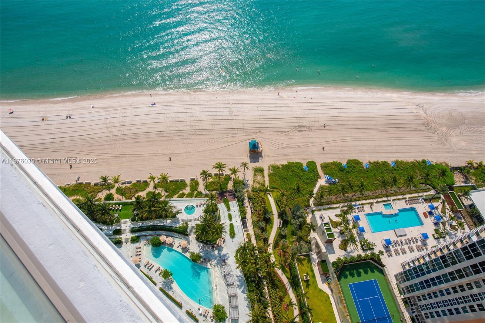 Turnkey 2 bedrooms + 2.5 bath + den corner unit with breathtaking unobstructed ocean views from every room (den is being used as a formal dining).White matte marble flooring thru-out,automatic blackout in both rooms & shades in living area;Exquisite wallpaper thru-out;Italian custom-made closets & mirrors; High-end custom designed ceiling lights;European furniture custom made. Modern kitchen & baths with European style cabinetry, stone countertops with island & top of the line appliances:Wolf ovens & espresso maker,Subzero Refrigerator & wine cooler. Large terraces with a summer kitchen. Exclusive amenities including: Restaurant, Oceanfront resort pool + bar, State-of-the-art fitness center & Spa, children’s play area,direct beach access with beach service, movie theater.