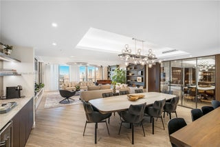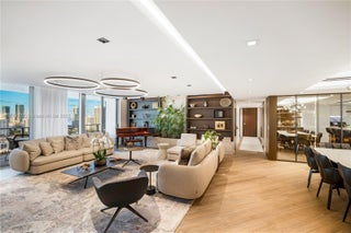 This stunning residence at 330 Sunny Isles Blvd Apt 5-2403 offers unmatched elegance with over $600K in designer upgrades. Featuring custom Italian Mia Cucina doors, Florense closets, panels, and built-ins throughout, the home is both functional and luxurious. The kitchen showcases a unique wood countertop finish, while a refined lighting design with chandeliers and recessed fixtures transforms the ambiance. The master suite was expanded and finished with full marble in the bathroom, custom closets, and a dramatic floor-to-ceiling fabric panel. Additional highlights include automated lighting, AC, curtains, a glass-enclosed family room, linear AC vents, electric blackout and sheer shades, a guest room with a fold-away bed. Every detail has been thoughtfully curated, to a one of a kind apt