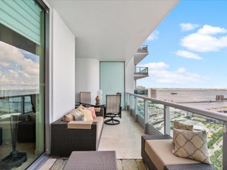 Spectacular bay, ocean & Miami Beach skyline views from this 37th-floor residence at 900 Biscayne Bay in Downtown Miami, steps from Miami Worldcenter & Kaseya Center. This updated 2-bed + den, 3-bath unit offers a private elevator foyer, polished travertine floors throughout (including balconies), floor-to-ceiling impact glass, LED lighting, custom shades with blackouts & thoughtfully designed custom closets. The open kitchen features a chef’s island with waterfall granite, granite sink & 55-bottle wine rack. Renovated bathrooms include frameless glass showers, Toto toilets, LED mirrors & modern fixtures. Two balconies total nearly 500sf with direct-water views. Exclusive resort-style amenities include lap & swimming pools, spa, fitness center, theater, kids' room & 24-hour security/valet.