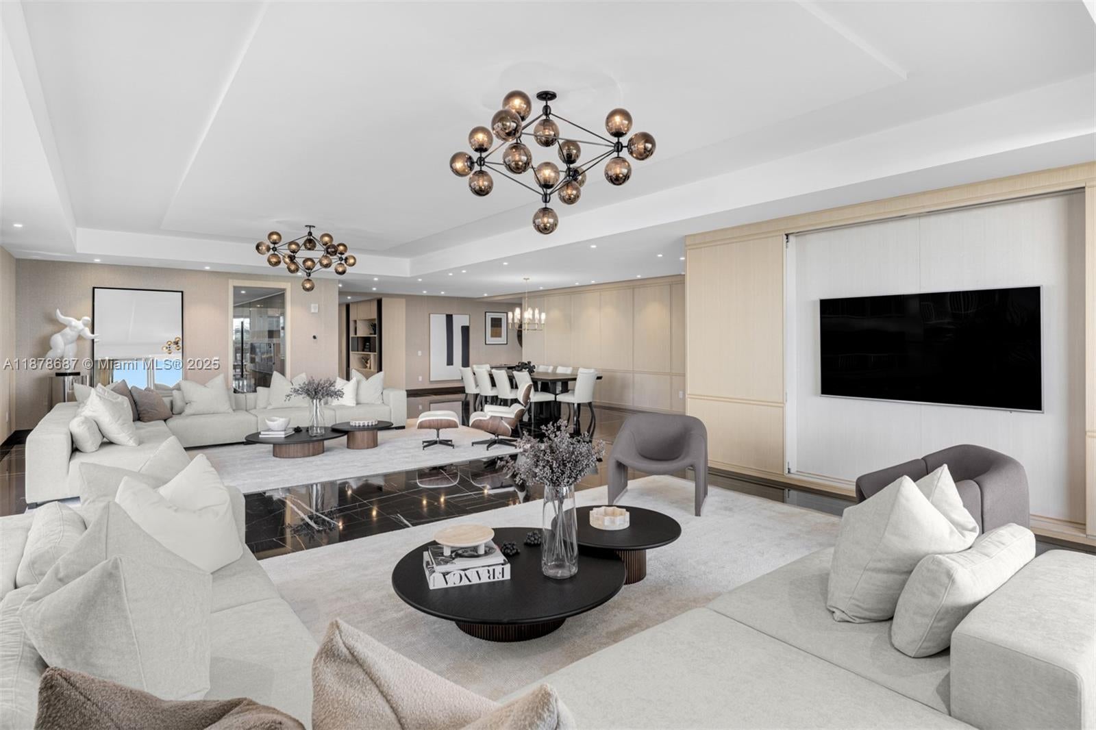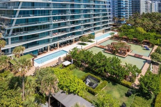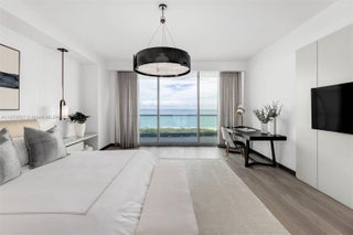 Spectacular beachfront corner residence at Fendi Château, an exclusive boutique building. East–west flow-through plan offers direct ocean and city views, nearly 6,000 SF, and wraparound terraces for sunrise-to-sunset living. A private elevator foyer opens to the living and dining area with 10-ft ceilings and Greek marble floors throughout. The Fendi-designed chef’s kitchen features “Mother of Pearl” finishes, a large island, and Gaggenau appliances. The primary suite, concealed behind elegant wood doors, reveals ocean views, dual custom closets, and a spa-inspired bath. With 4 bedrooms, 6.5 baths, and 2 staff quarters, this residence offers estate-like privacy. Amenities include 2 pools, spa, fitness center, cinema, residents’ restaurant, concierge, beach service and more.
