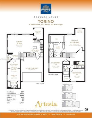 Extraordinary Grand Villa in exclusive Artesia by Minto. The Torino model is one of the most desirable floor plans in Artesia. The only true 2-story 4-bedroom, 3.5 bath Villa in this resort style community. This corner residence is in pristine condition & on the first floor it features a large guest suite with seating area that can be used as a second master bedroom. Well appointed home w/ open layout perfect for entertaining with great flow and high ceilings. The 2nd floor features the master bedroom plus two large guest bedrooms. Premium upgrades include beautiful engineered wood floors, White Italian ceramic tile, impact windows, spacious walk-in closets, 2-car garage etc.. 3 pools, 3 lighted tennis courts, gym & more. Credit 700+ as per HOA. Small pets OK. Wi Fi/internet cable included