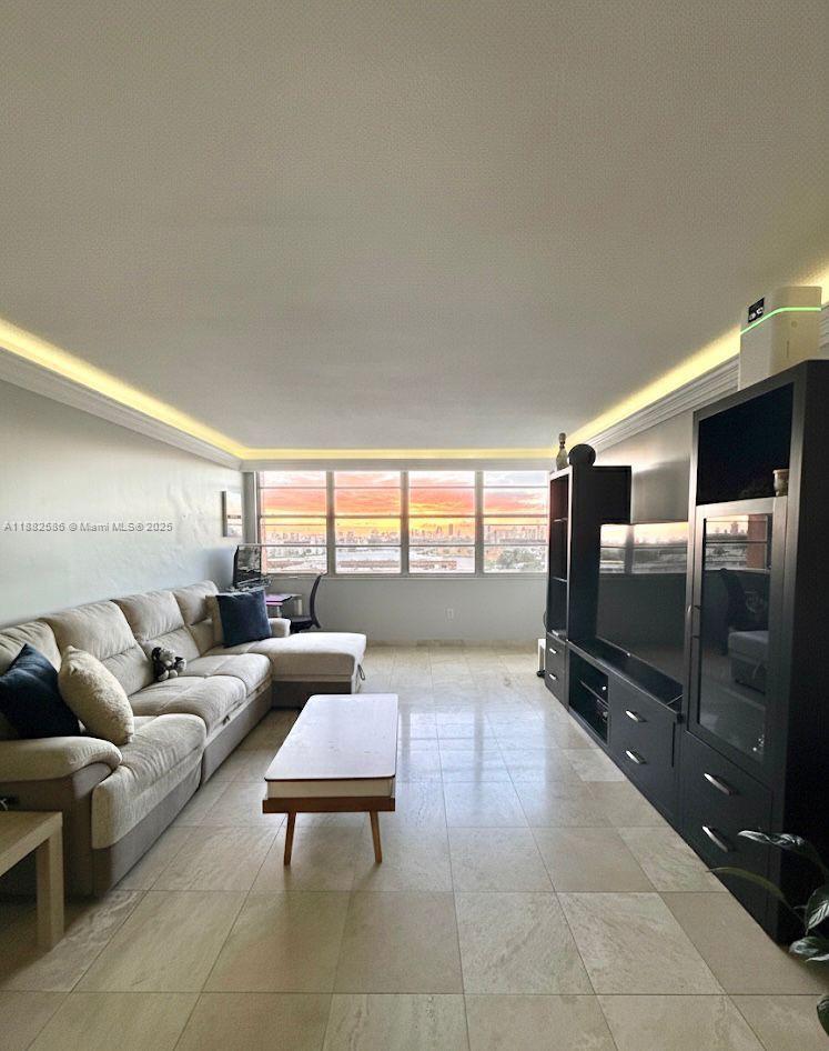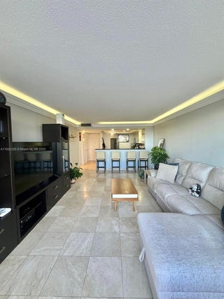 $10k seller concession. Step into this beautifully updated 1-bed 2-baths residence featuring elegant marble flooring throughout. The home boasts a spacious floor plan with two walk-in closets. The remodeled modern kitchen is designed with granite countertops, stainless steel appliances, and a sleek backsplash. Relax on your private balcony and enjoy breathtaking sunset views. Soft LED crown molding lighting, creating a warm atmosphere. Minutes from beach, malls, groceries store, and major highways. Two swimming pools, Guest and Assigned parking spaces, storage unit, Laundry facilities, HOA covers water, trash, and pest control. A/C 2022, 40 & 50-year recertifications done with no assessments, and currently leased for $1,980/month until Sept 2026. It's an excellent investment opportunity.