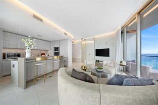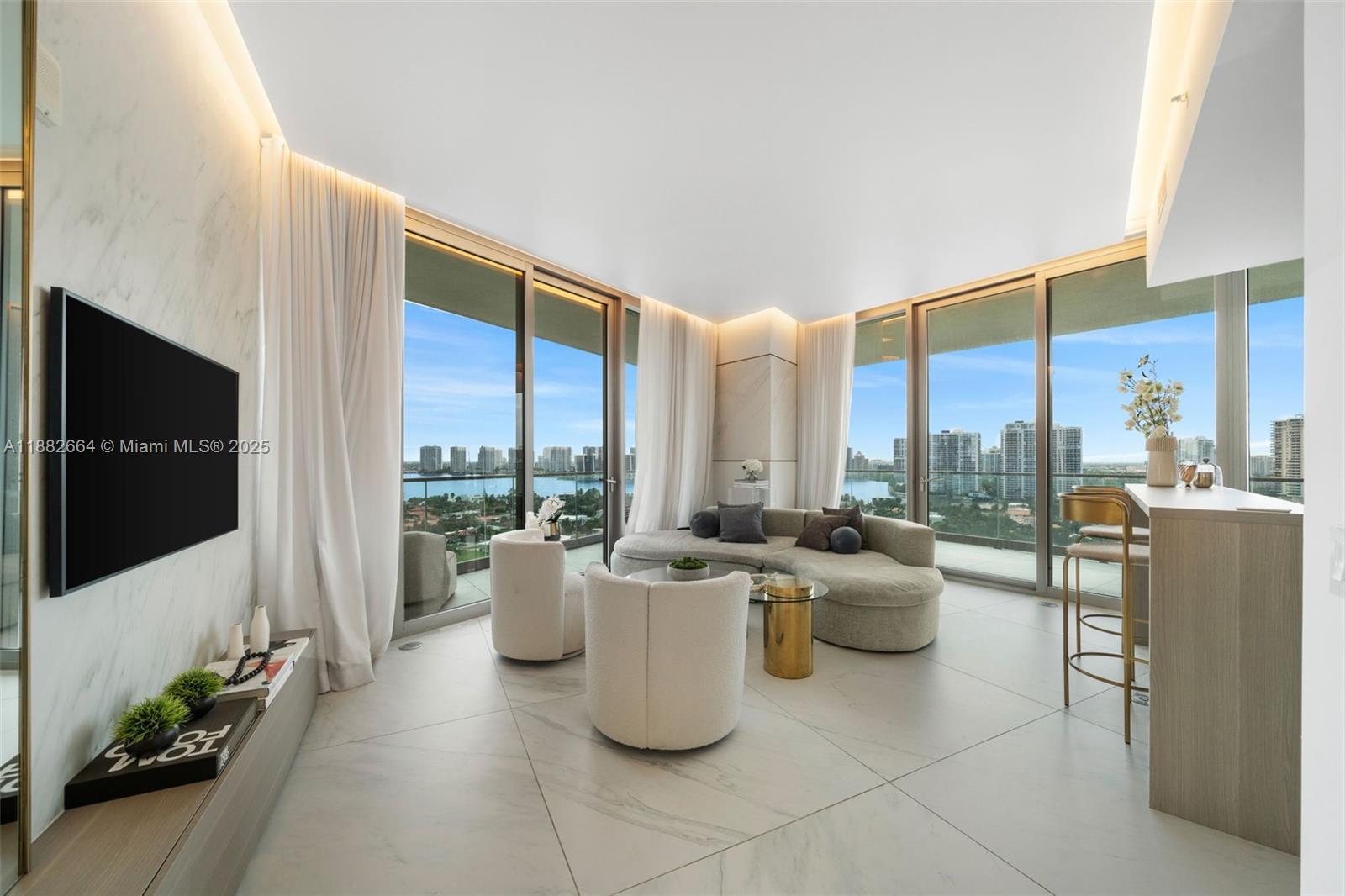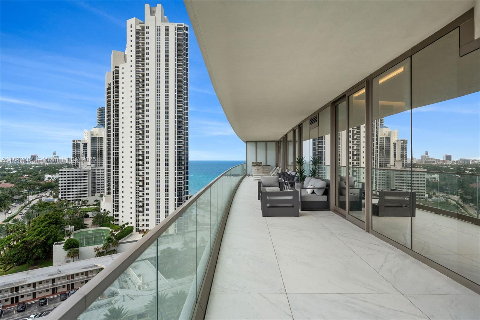 Discover refined coastal living in this 2BR/2BA corner residence at Armani Casa Tower. Featuring 1,212 sq. ft. of interiors and an expansive 1,000 sq. ft. wraparound balcony with summer kitchen, this fully furnished home offers panoramic ocean, Intracoastal, and skyline views from every room. Designed with 10-ft floor-to-ceiling windows, an open layout, and a gourmet kitchen with top-tier appliances, the residence blends elegance with functionality. The primary suite includes a spa-inspired bath with soaking tub, glass shower, and walk-in closet. Set on a 3.2-acre oceanfront site, residents enjoy exclusive amenities: heated pools, spa, sauna, fitness center, children’s play area, social lounges, valet, and direct beach access. A true luxury lifestyle in the heart of Sunny Isles Beach.