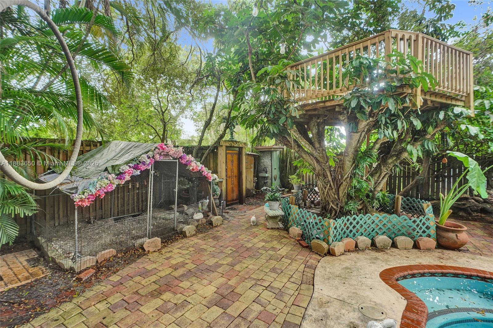 Set on a desirable corner lot in Miami Shores, this 4 bed 5 bath home welcomes you with lush grounds and a tranquil oasis-like setting. The front yard feature a sparkling pool, treehouse, outdoor kitchen with rose granite counters, hibachi, fireplace, and multiple areas designed for entertaining or relaxing. Inside, the home showcases unique character with tile and porcelain floors, speckled granite kitchen, indoor fireplace, custom stained glass accents, floor-to-ceiling spa-style baths, and private bedroom kitchenettes providing flexible living options. Additional highlights include eco-friendly touches, two split A/C units, and five bidet baths. Income-generating property, located near top-rated schools, dining, boutique shopping, the Design District, Downtown, beaches. Please ask us about the 3-2-1 approved lender buydown. Meaning you get an interest rate as low as 3% with a monthly payment probably lower that what you're paying in rent!! Unpack & enjoy...