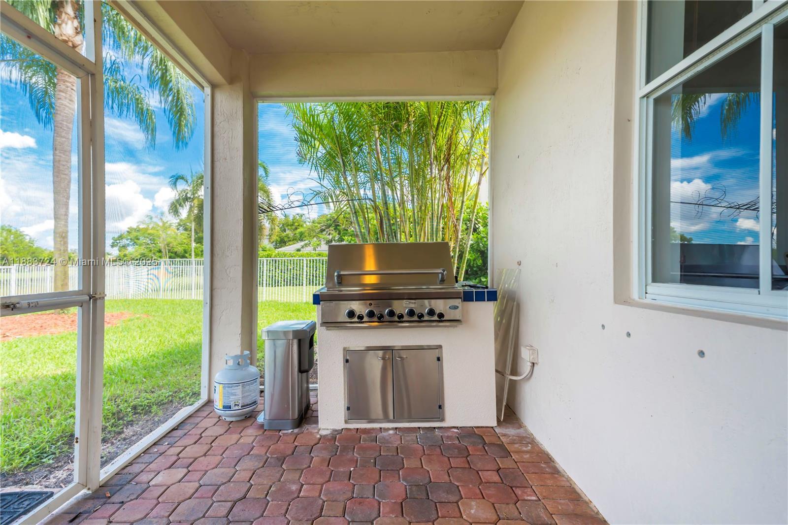 Awning(s), Barbecue, Enclosed Porch, Fence, Lighting, Outdoor Grill, Patio