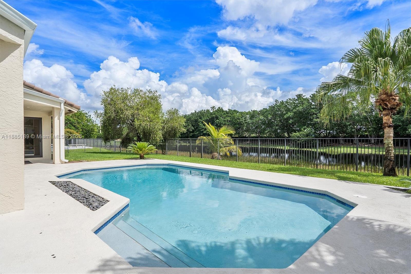 LAKESIDE LIVING! Weston’s Palm Island. Remodeled 5 bedrooms, 4 bathrooms one-story lakefront home. Well thought out floor-plan with expansive living room and dining room high ceilings full of natural light, 2025 modern kitchen with high-end appliances open to the family room where you will find elegance and comfort. The well appointed primary suite offers a spa-style retreat. High-Impact windows and doors throughout. The outdoors boast a saltwater pool with magnificent lake views, covered patio perfect for entertainment. Gated community conveniently located near park, A+ schools, shopping and dining!