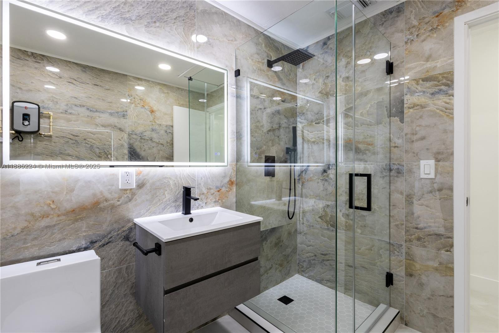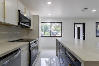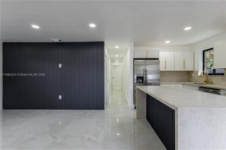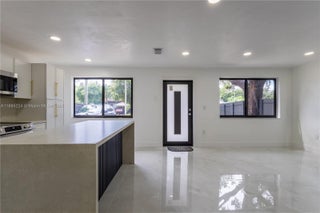 Beautifully renovated 3-bedroom, 2-full bath residence in Miami, featuring a brand new roof (2025), new central A/C, hurricane impact windows and doors, and a designer kitchen with Taj Mahal quartz waterfall island, Italian cabinetry, and new stainless steel appliances. Spacious interiors include porcelain marble flooring throughout, recessed lighting, and custom designer wood panel accents. Bathrooms are finished floor-to-ceiling in porcelain with frameless glass doors, modern vanities, and mirrors. Additional upgrades include a tankless water heater, freshly painted interior/exterior, Dura fence with gated entry, and new professional landscaping. Conveniently located near schools, hospitals, I-95, Wynwood, and more. Turnkey and move-in ready.
