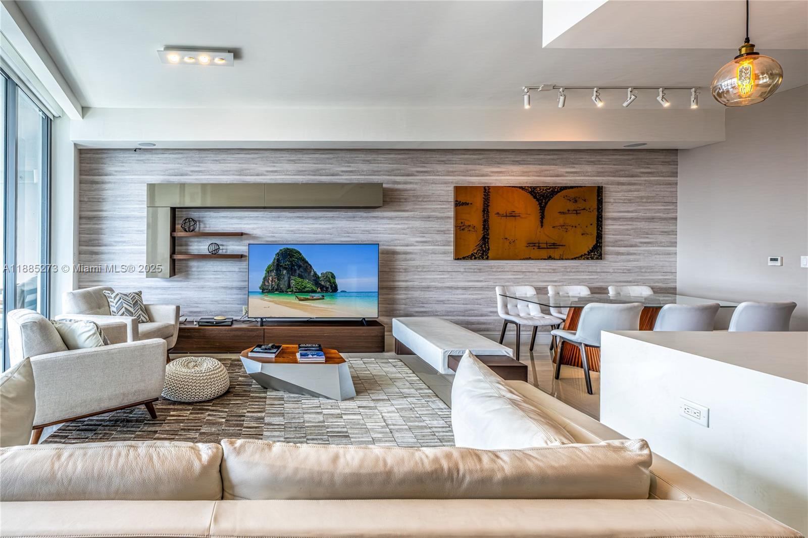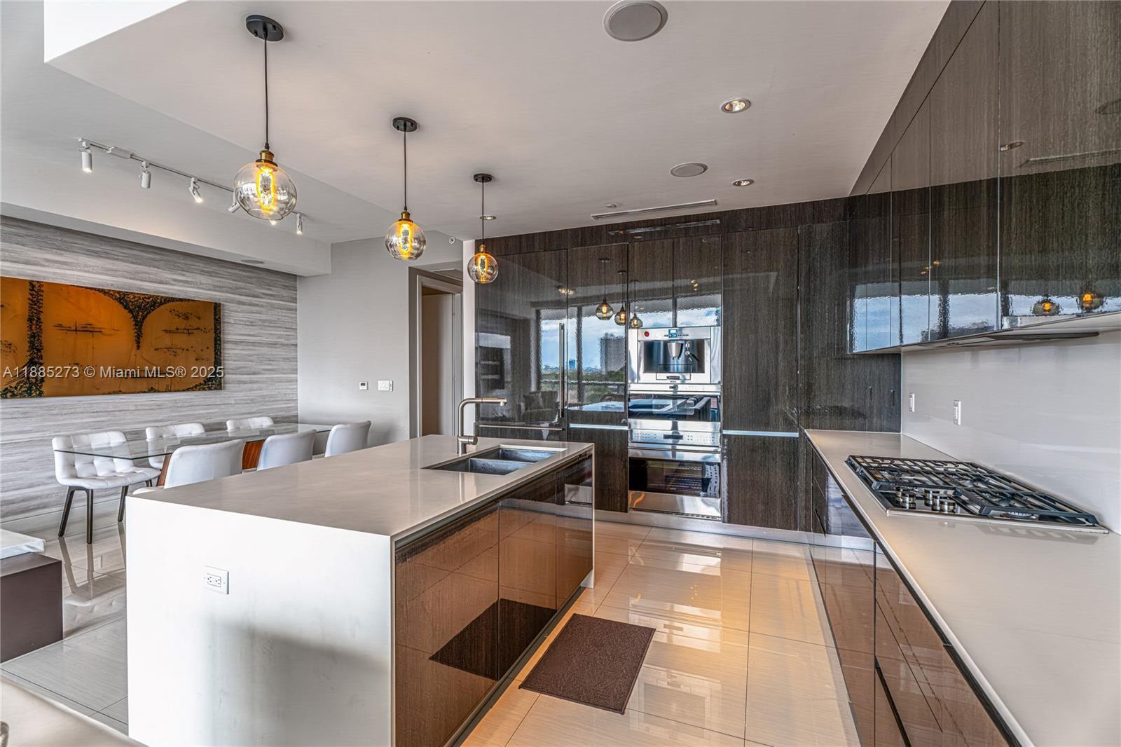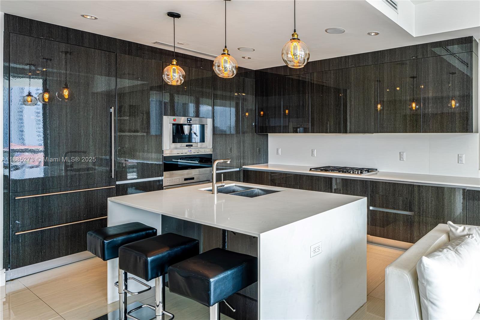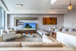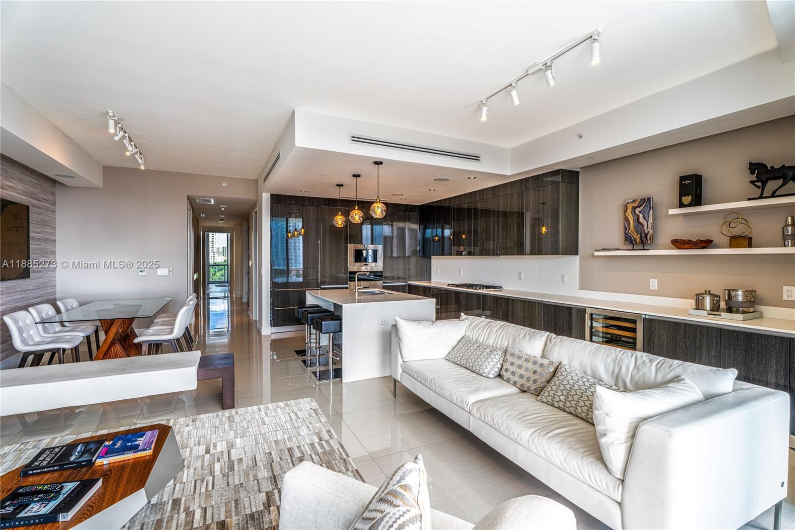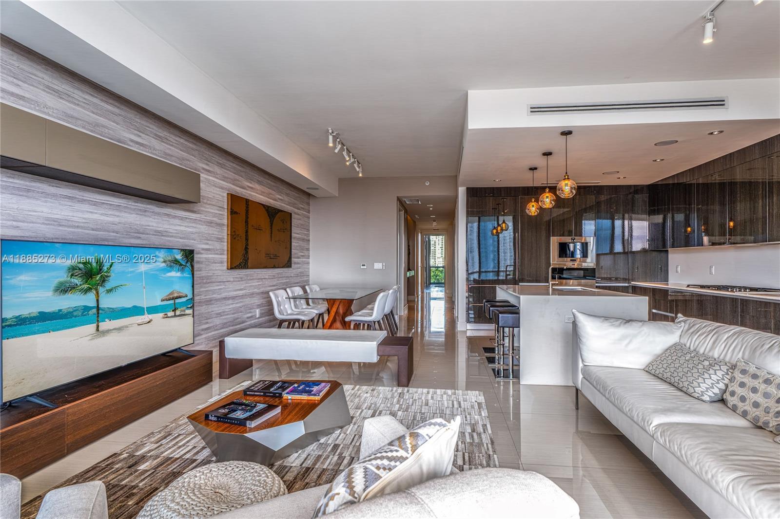 This elegant fully furnished 3-bedroom plus den, 4.5-bath residence at Echo Aventura offers 2,238 SqFt of living space. It includes two parking spaces and spacious terraces with a summer kitchen and BBQ, perfect for entertaining. The master suite has a minibar with fridge, and the kitchen comes with Sub-Zero appliances, wine cooler, coffee machine, industrial range, and built-in ovens. The residence is fully equipped with designer furniture, TVs, and smart home technology. Enjoy a balcony off the bedrooms with north views, and another balcony from the master and living areas with beautiful southern views of the Intracoastal. Ideally located close to Aventura Mall, fine dining, and Sunny Isles Beach.