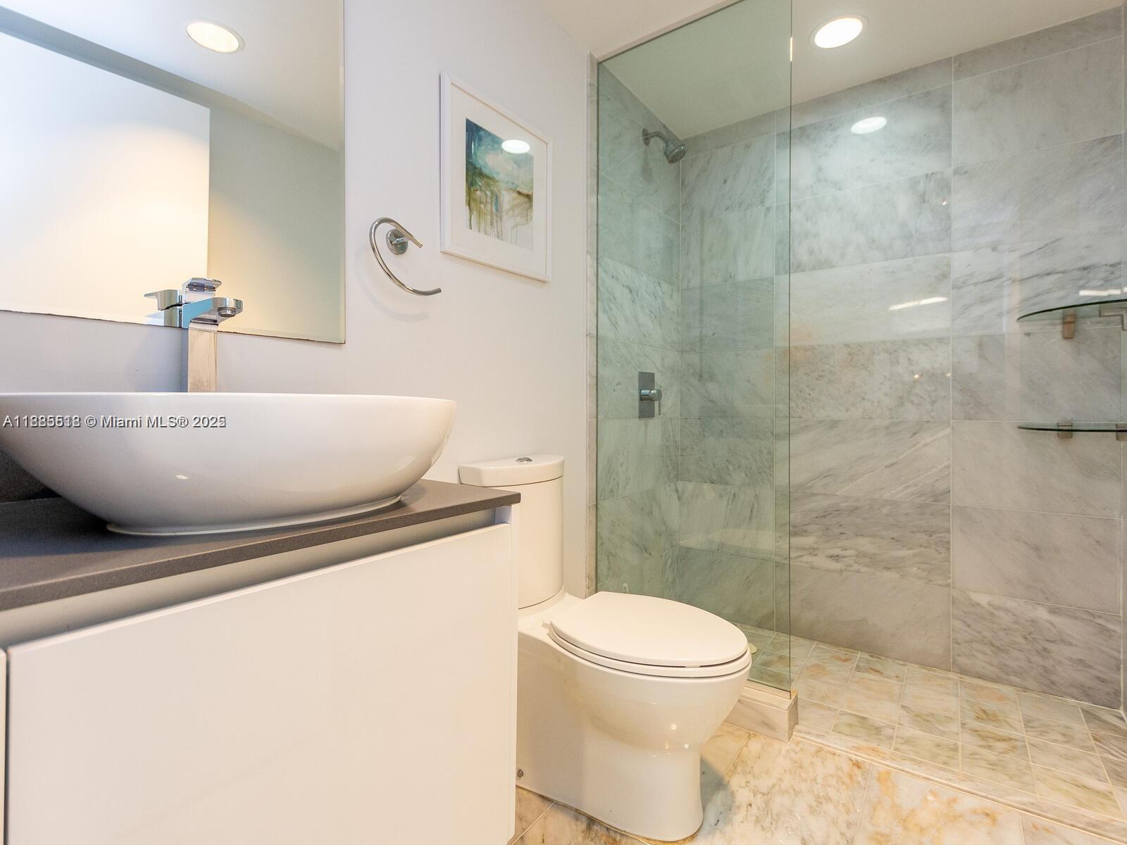 Breathtaking waterfront vistas! This luxury boutique 9-story waterfront residence with only 41 units. Ideally located steps away from the beach, Bal Harbour shops, gourmet dining and nightlife. The unit features high ceilings, impact windows, sleek Italian cabinetry with Viking appliances, and quartz countertops, nicely furnished and decorated, also a very spacious balcony with tranquil water views, and two parking spots. ¡Exclusive Island living! It features a bayfront water deck, a state-of-the-art fitness center, sauna, a waterfront summer kitchen, a boat dock, two pools, kayaks and paddle boats available.