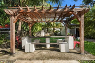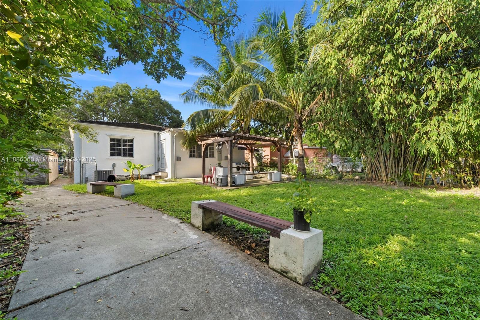 Step into the allure of this 3 bedrooms, 3 bathrooms + office room, plus a separate 1 bed/1 bath guest cottage. Located just 7 minutes from the Design District. This home is surrounded by walkable dining, cafés, gyms, yoga studios, and the MiMo District’s vibrant shops. Inside, enjoy light-filled open living spaces with high ceilings, wood floors, a stone fireplace and a Florida/media room that easily flexes as an additional bedroom. The updated kitchen flows seamlessly into the spacious dining area. The tropical backyard features a hot tub/Jacuzzi, dining pergola, avocado & banana trees, and plenty of space to add a pool or expand. Charming front porch and lush gardens. additional perks includes an updated roof, AC, water heater, oversized lot, gated motorized entry & parking.