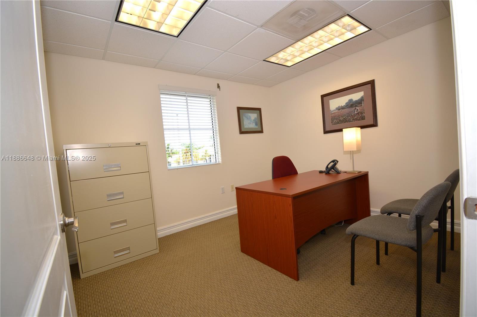 Professional office on second floor in a class "A" office building, ideal for medical or professional services. The 1530 square feet office Suite consists of two separate units 207 & 208 under the same folio. Unit 207 has four offices, one conference room, reception lobby area, a work area and a kitchen. Unit 208 has a reception work area office and one private office. Each suite has its own entrance to be used separately, or they can be opened for one single use. The unit comes with three owned parking spots, one undercover car park and two open-air parking spaces plus ample parking spaces throughout for employees and visitors. All windows have roll down shutters.