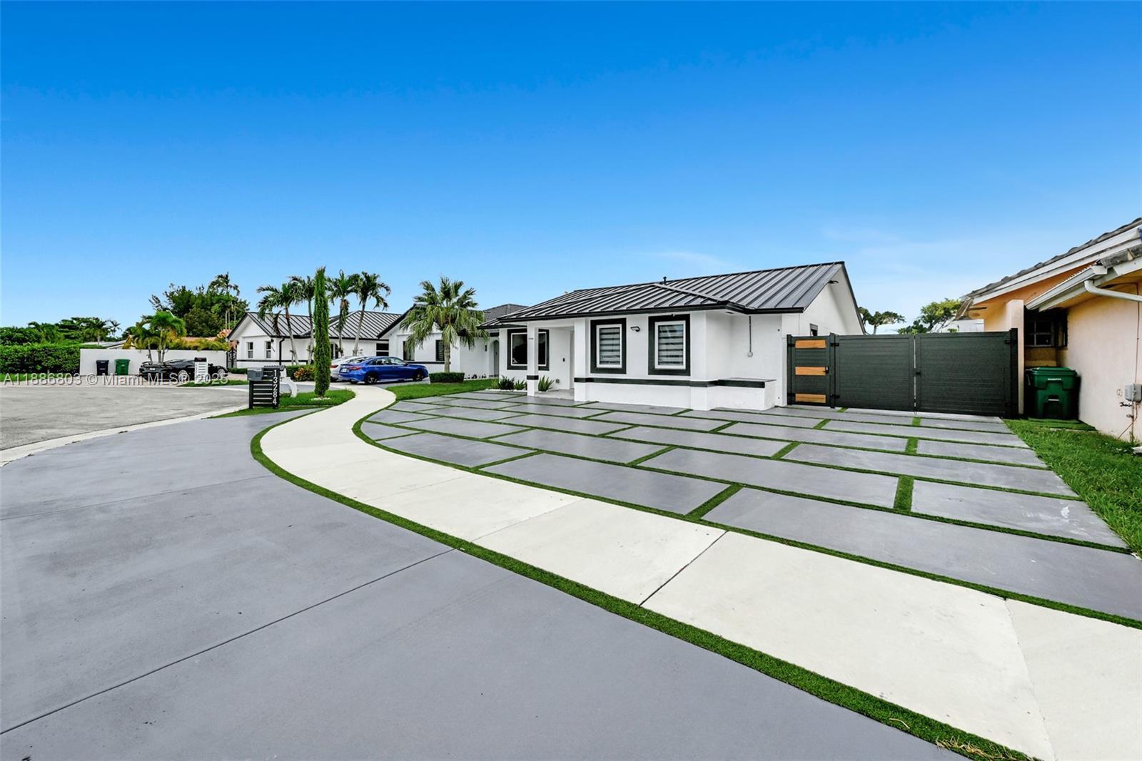 Experience luxury living in this stunningly renovated single family home, where modern design meets ultimate comfort. Situated in a cul-de-sac, this contemporary gem features an open concept layout with soaring 12-foot ceilings, creating bright and spacious living areas. The home is adorned with premium finishes, including high-end appliances, sleek cabinetry, and a Cristallo island with LED lighting. Elegant porcelain flooring flows throughout, complemented by beautifully designed bathrooms and bedrooms with custom closets. The fully equipped second kitchen and family room enhance the home's functionality, while the private backyard provides the perfect setting for entertaining or relaxing in style. With a new metal roof, impact windows, and impact doors for added security and insulation.