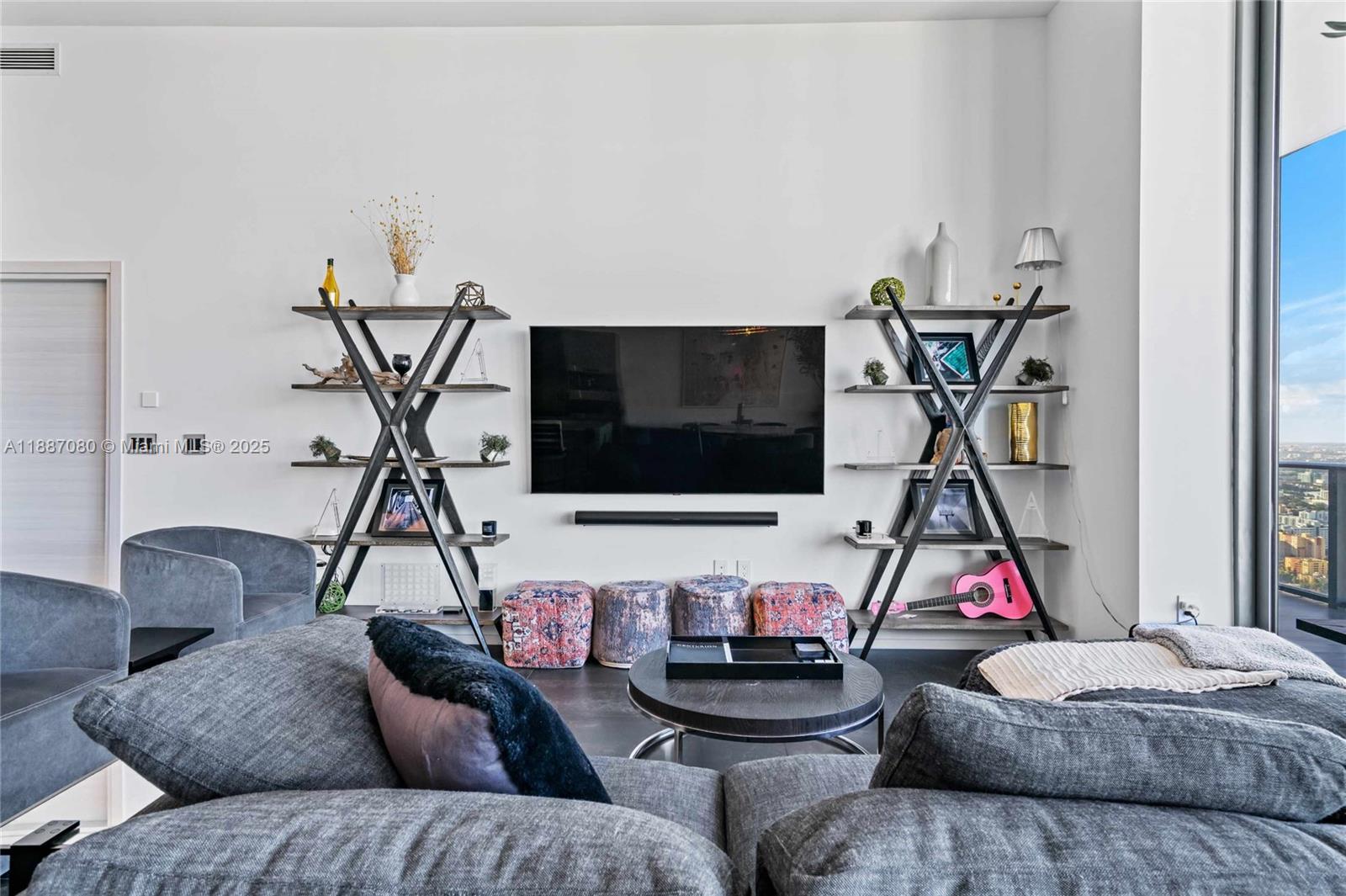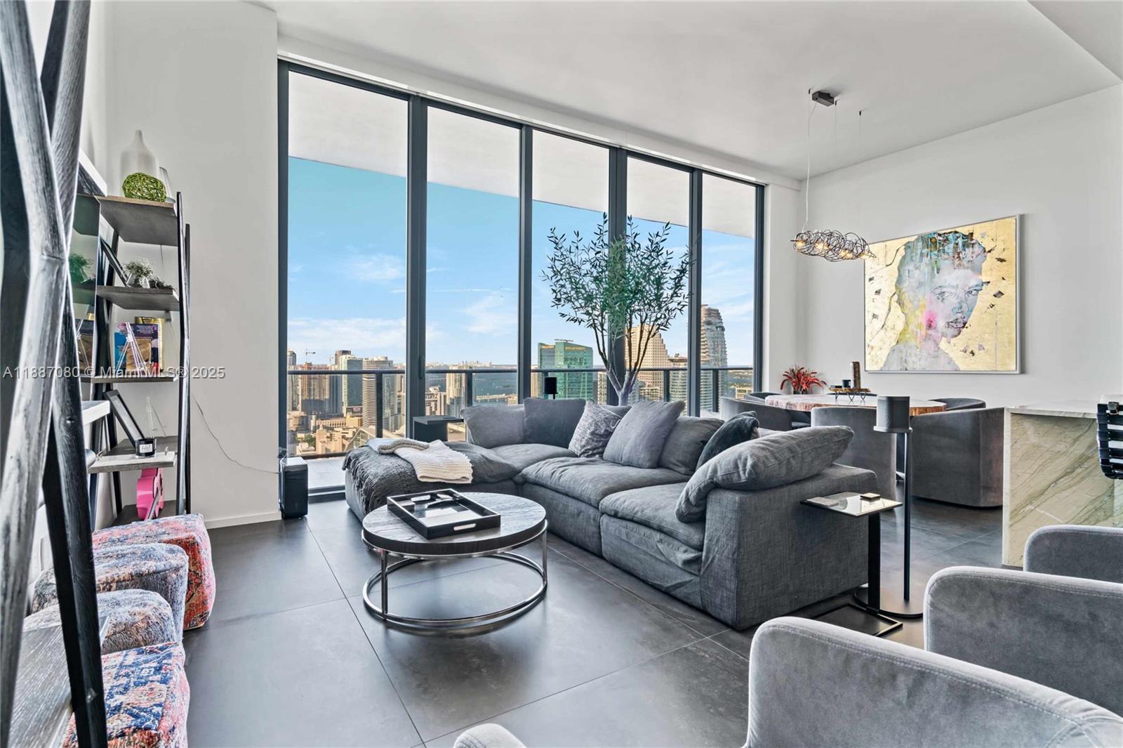 Penthouse 5704 redefines elevated living in the heart of Brickell. Spanning over 2,500 SF + 603 SF of sweeping terrace, this expansive residence offers 3 oversized bedrooms, a den, and 4 full bathrooms, with soaring 12’ ceilings that frame panoramic city, bay, sunrise, and sunset views from every room. One of the largest floorplans, this custom-renovated home exceeds a typical “smart home." Features a private elevator foyer, custom European closets, intelligent bidet toilets with heated seats, custom hardwired motorized Lutron shades, smart dimmers, scene keypads and bespoke finishes. 2 side-by-side parking spaces. Live atop SLS Lux with a private Sky Lounge wine locker and access to luxury amenities: rooftop pools, cabanas, tennis court, cigar room, gym, full-service spa, BBQs and more.