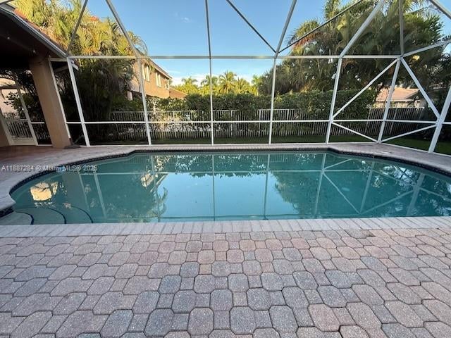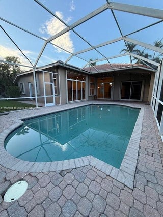 Fully remodeled home in the incredible community of Weston Hills. This one-story residence offers 5 bedrooms, 3 bathrooms, and spacious open floor plan with high ceilings and abundant natural light. Modern kitchen with granite countertops, stainless steel appliances, and updated cabinets. Brand New ceramic floors throughout, updated bathrooms. Private backyard with covered patio, screened pool, perfect for entertaining. Accordion shutters in the windows. Space for Six parking car spots. Zoned for A+ schools.