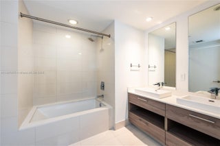 Spacious one-bedroom plus open den, two-bath residence at SLS Brickell (DUA), ideally located on South Miami Avenue just steps from top restaurants, shops, and walking distance to Brickell City Centre. This bright home features sleek tile floors, a gourmet kitchen with Bosch stainless steel appliances, and sweeping city views from the living area and balcony. The open den offers flexibility for an office or guest space. Residents enjoy unmatched hotel-style amenities: resort-style pool with poolside dining, full spa, fitness center, 24-hour concierge, valet parking, and in-room dining. Currently leased at $3,900/month until January 29, 2026.