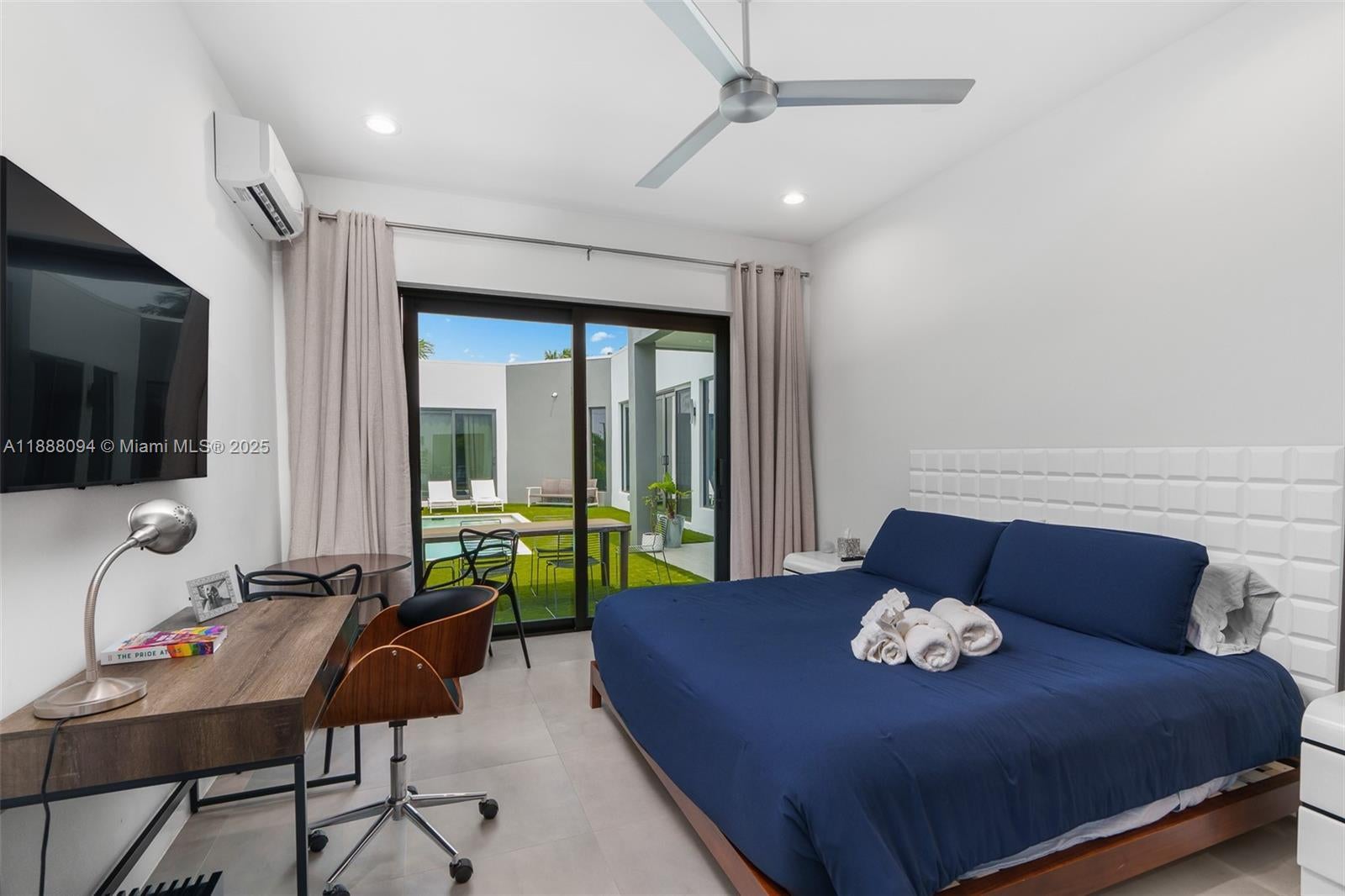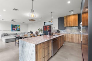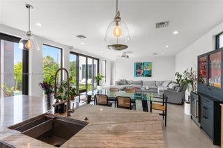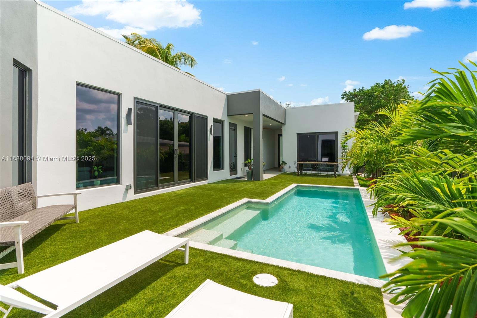 This modern new construction home outside flood zone offers 4 bedrooms, including a detached cabana with kitchenette and ensuite bath that doubles as a proven income generator. Open, loft-like interiors with soaring ceilings create a bright, minimalist backdrop. The chef’s kitchen is both stylish and functional, featuring quartzite counters and a 10' island that anchors the living area. The primary suite feels like a retreat, with a massive walk-in closet and spa bath showcasing Italian fixtures, including the Rapsel Arne soaking tub and Fantini dual showers. Outdoors, enjoy a heated saltwater pool and lush gardens. Solid concrete construction, impact glass, solar panels, EV charger, elevated from the street—and just minutes to Wilton Drive. Low insurance cost + Two-car garage.