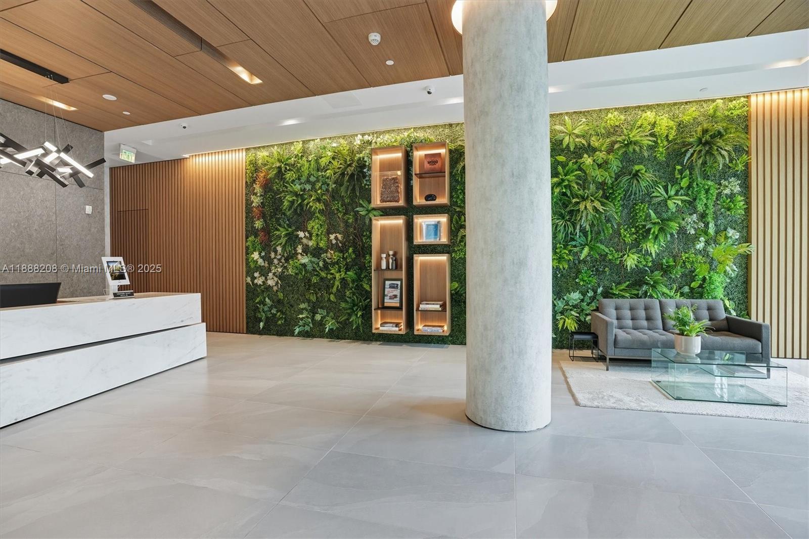 Exclusive opportunity to own a Glasshaus condo, a stunning, light-filled residence with floor-to-ceiling windows and a full-wall balcony accessible from the living room and primary suite. Den/office features a Murphy bed. The primary suite boasts an ensuite, walk-in closet, and second closet. In-unit washer and dryer plus 2 assigned secure parking spaces. Contemporary and elegant open layout showcases a sleek Milino chef style kitchen with full-wall storage, panel-covered refrigerator, double wall ovens, under-cabinet lighting, and a waterfall Corian island with wine chiller. Sophisticated amenities include a rooftop pool, state-of-the-art fitness center, and attended front desk. Additional garage storage. Minutes from Dinner Key, Seminole Boat Ramp, Bayside Park, shops, and fine dining.
