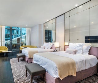 Experience the best hotel suite floorplan with 2 queen beds and a private den at SLS LUX, the most desirable hotel and residence in Brickell. Fully furnished with the option for daily rentals, this unit features Smart Home Technology, Italian kitchen cabinetry with top-tier appliances, rain showers in the master bath, and floor-to-ceiling glass walls. Enjoy a spacious balcony with breathtaking city and bay views. Indulge in 5-star amenities including pool, cabanas, poolside bar, BBQ area, gym, spa, tennis, basketball, party room, concierge, and 24/7 security.