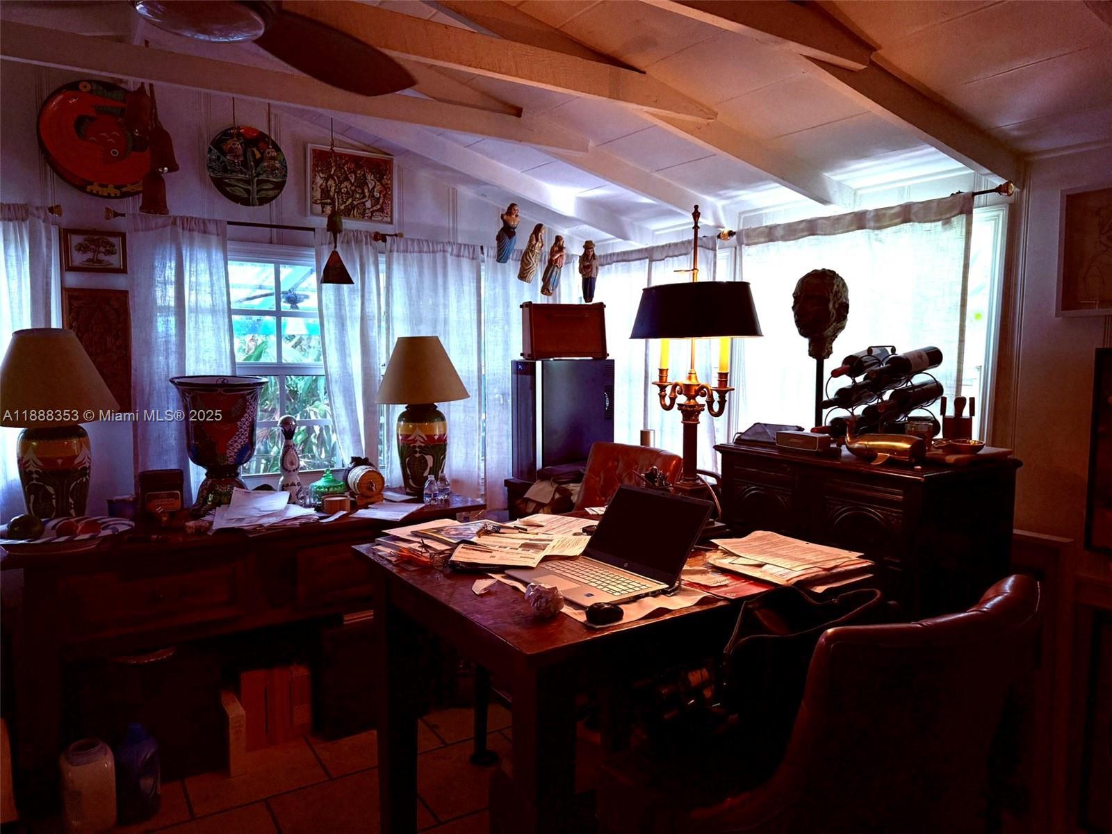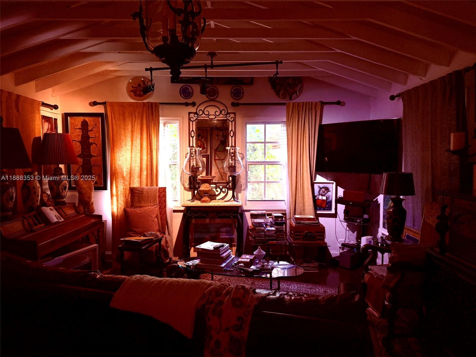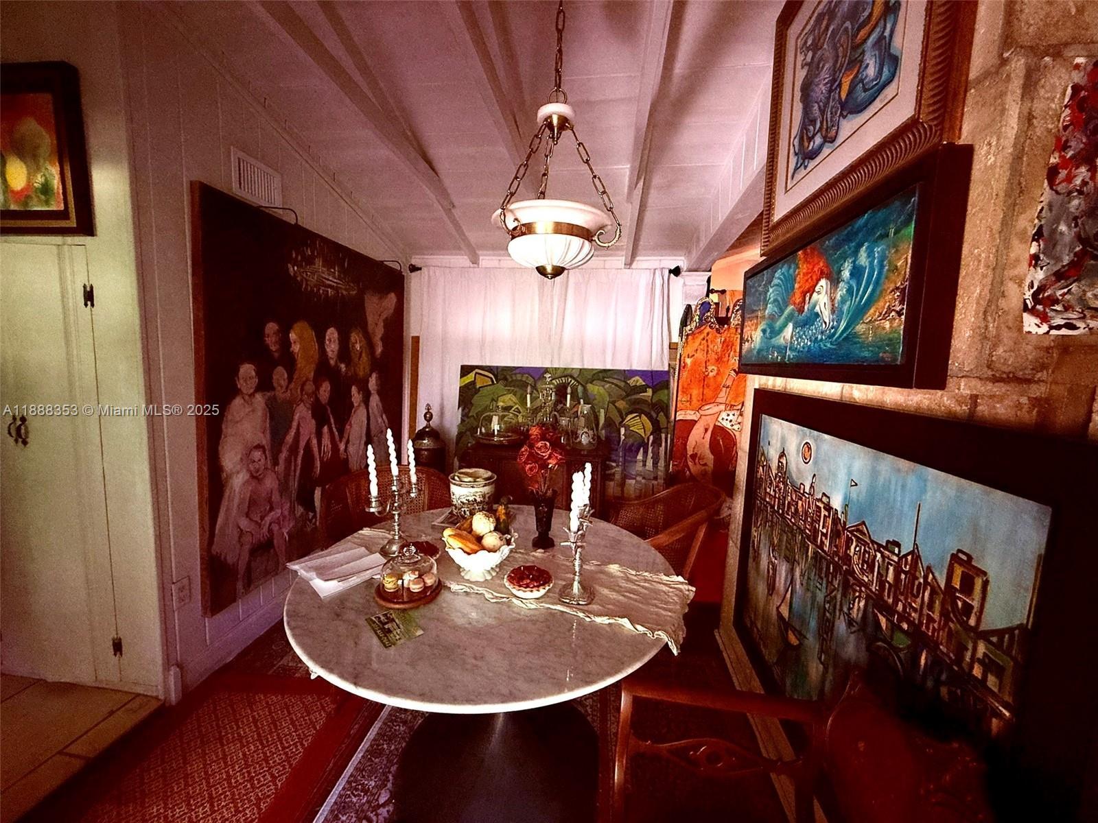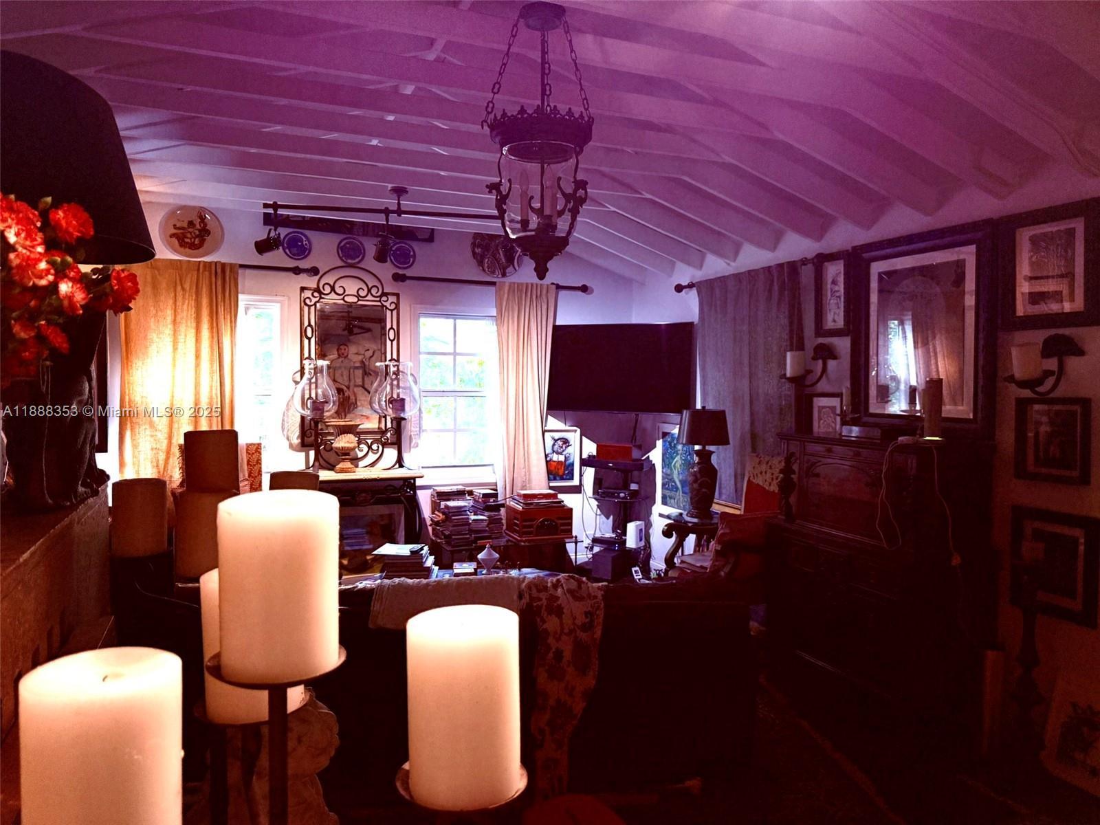 Prepare to be transported back in time to this extraordinary 1940's Miami 1/1 tropical dollhouse with detached 1/1 guest house. Larger than indicated on tax rolls (estimated at apprx. 1200 sq ft living area) because of the garage conversion (which was done without permit). This mid-20th century time machine will propel you back to a simpler time of lush, private gardens, gated coral walls, Dade county pine ceilings, ornamental solid wood doors and mossy coral steps and into a dramatic snapshot dripping in artistic history. More like a museum than a home, the flair for the dramatic is apparent everywhere. Plenty of room to expand, this mid-century masterpiece is awaiting your personal touches. (General disclaimer: Buyers should not rely on any representations and should do their own due diligence on this or any property.)
