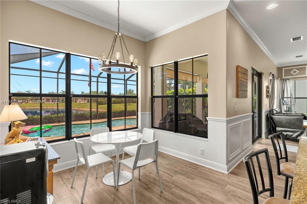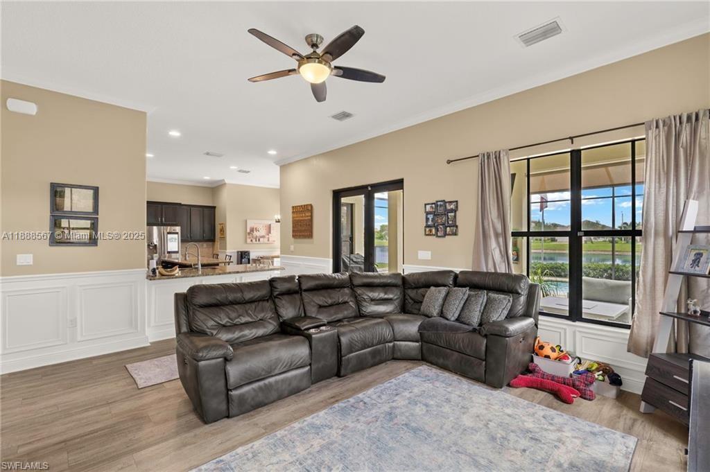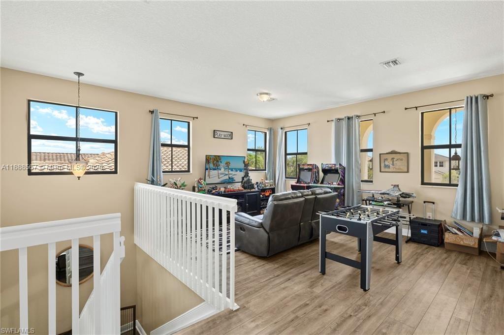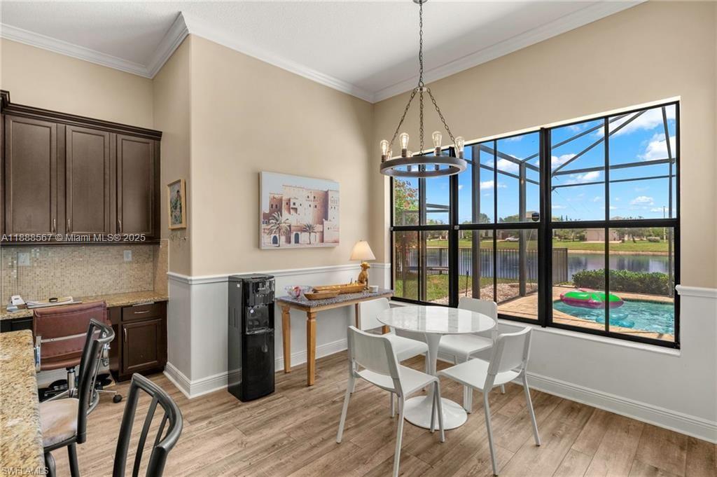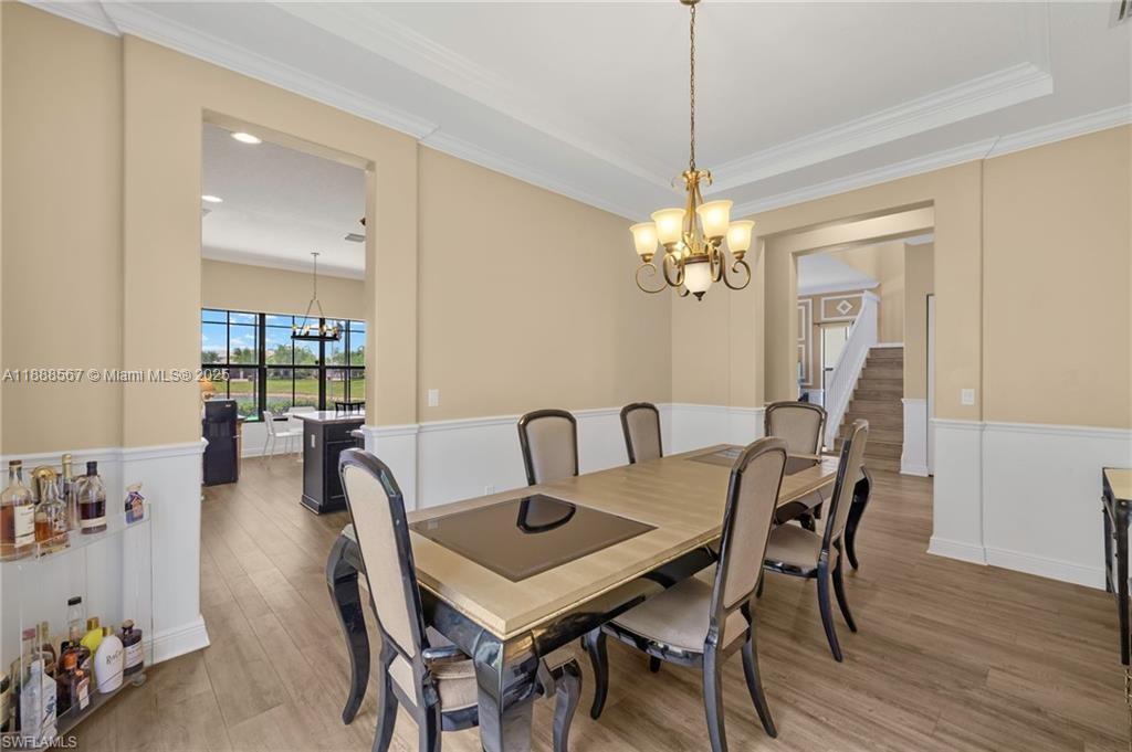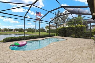 PRICE REDUCED—WON’T LAST! Beautiful Danby Model with pool and lake views! Features 4 bedrooms, 3 baths, large loft, millwork, engineered floors, and spacious kitchen with 42" cabinets, crown molding, tile backsplash, and granite island with breakfast nook overlooking pool and water. Formal dining, 1 bed/1 bath downstairs; upstairs has 3 bedrooms, 2 baths, and loft. Master offers dual sinks, tub, and shower; Jack & Jill bath serves 2 bedrooms. Exterior includes 7 security cameras, fenced yard, screened lanai, covered patio, and in-ground pool with stunning views! Located in Maple Ridge within award-winning Ave Maria, with clubhouse, pool, billiards, plus community waterpark, dog parks, playgrounds, trails, shopping, and dining.