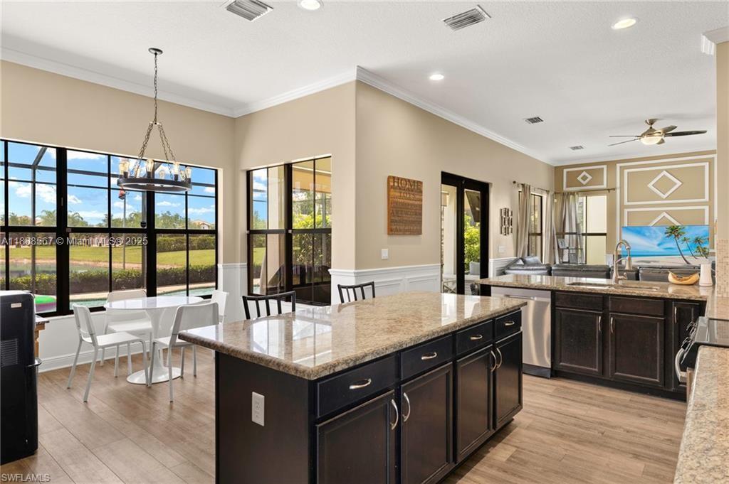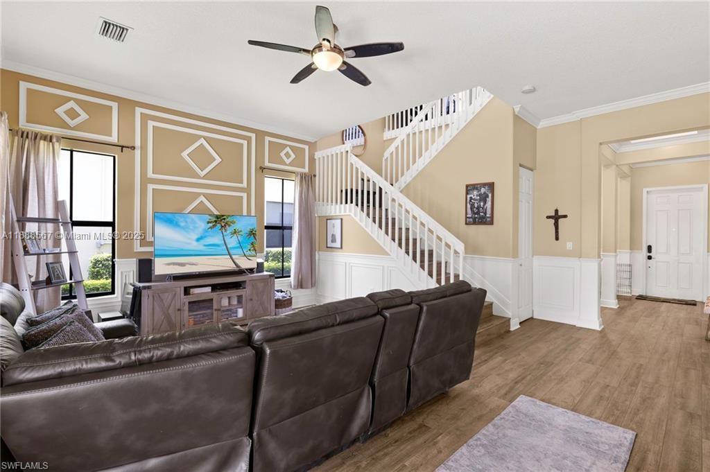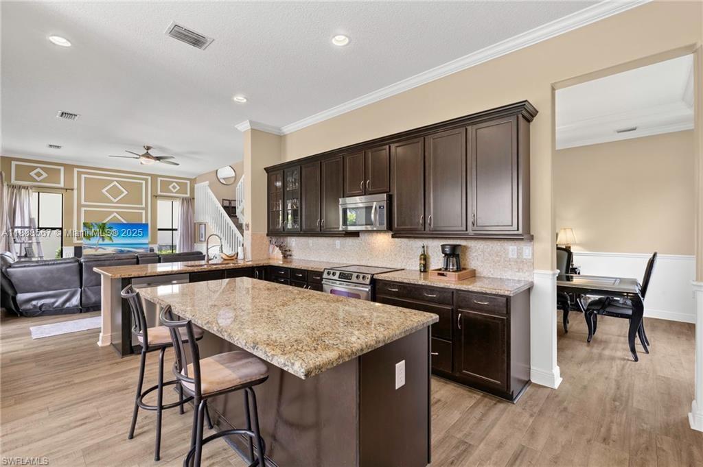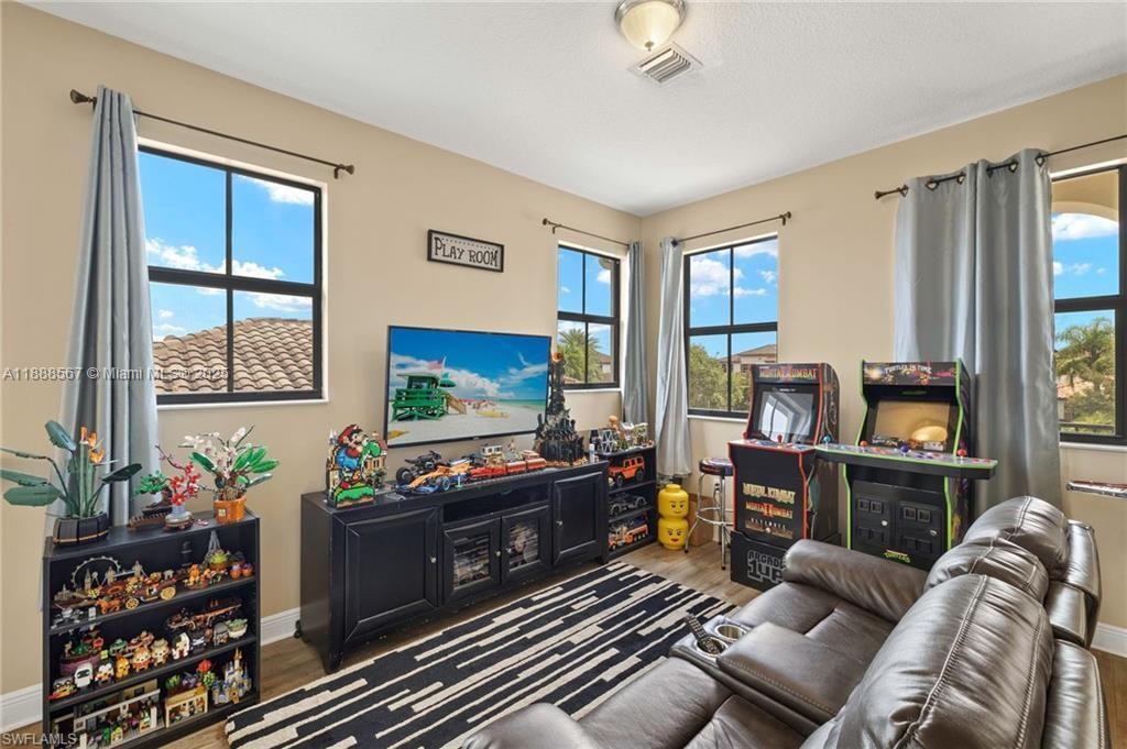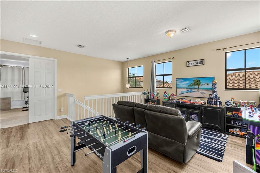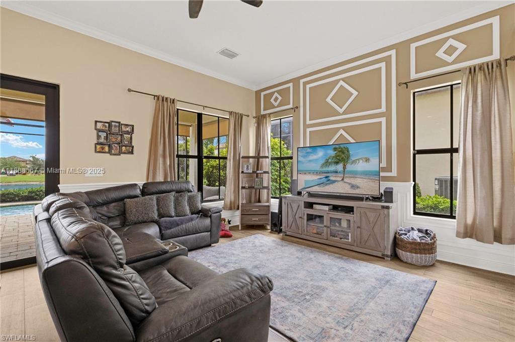 PRICE REDUCED—WON’T LAST! Beautiful Danby Model with pool and lake views! Features 4 bedrooms, 3 baths, large loft, millwork, engineered floors, and spacious kitchen with 42" cabinets, crown molding, tile backsplash, and granite island with breakfast nook overlooking pool and water. Formal dining, 1 bed/1 bath downstairs; upstairs has 3 bedrooms, 2 baths, and loft. Master offers dual sinks, tub, and shower; Jack & Jill bath serves 2 bedrooms. Exterior includes 7 security cameras, fenced yard, screened lanai, covered patio, and in-ground pool with stunning views! Located in Maple Ridge within award-winning Ave Maria, with clubhouse, pool, billiards, plus community waterpark, dog parks, playgrounds, trails, shopping, and dining.