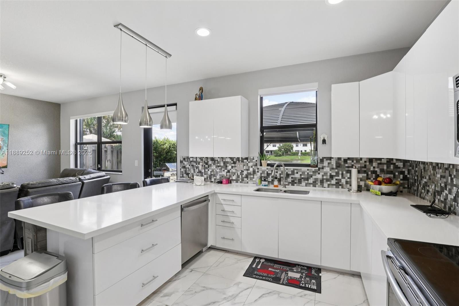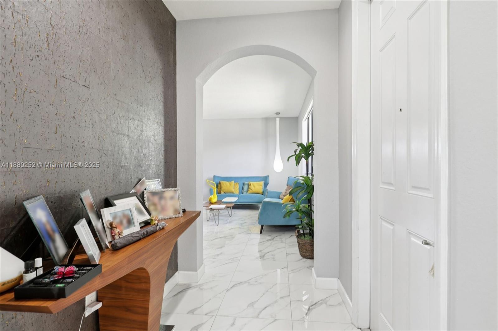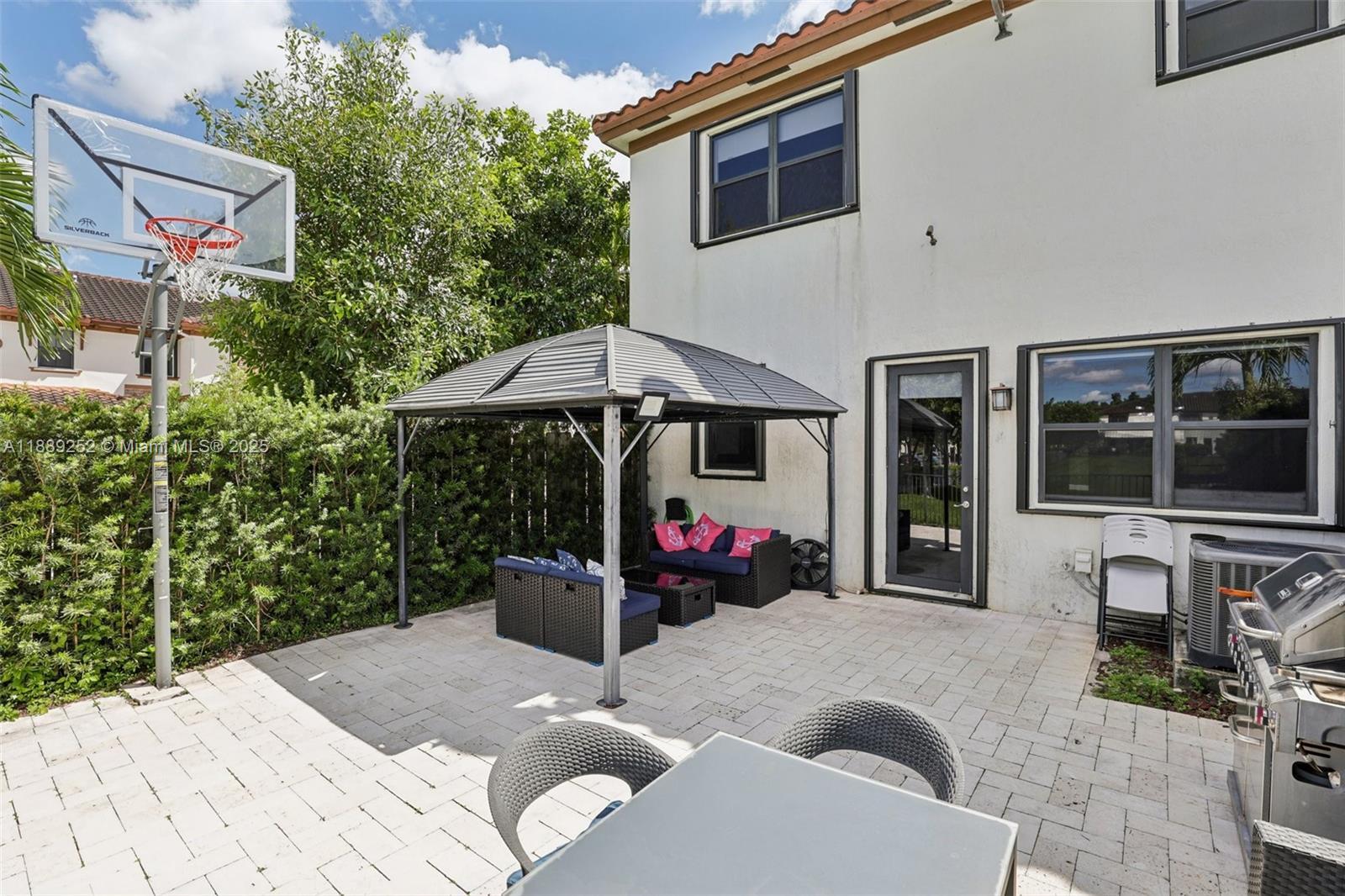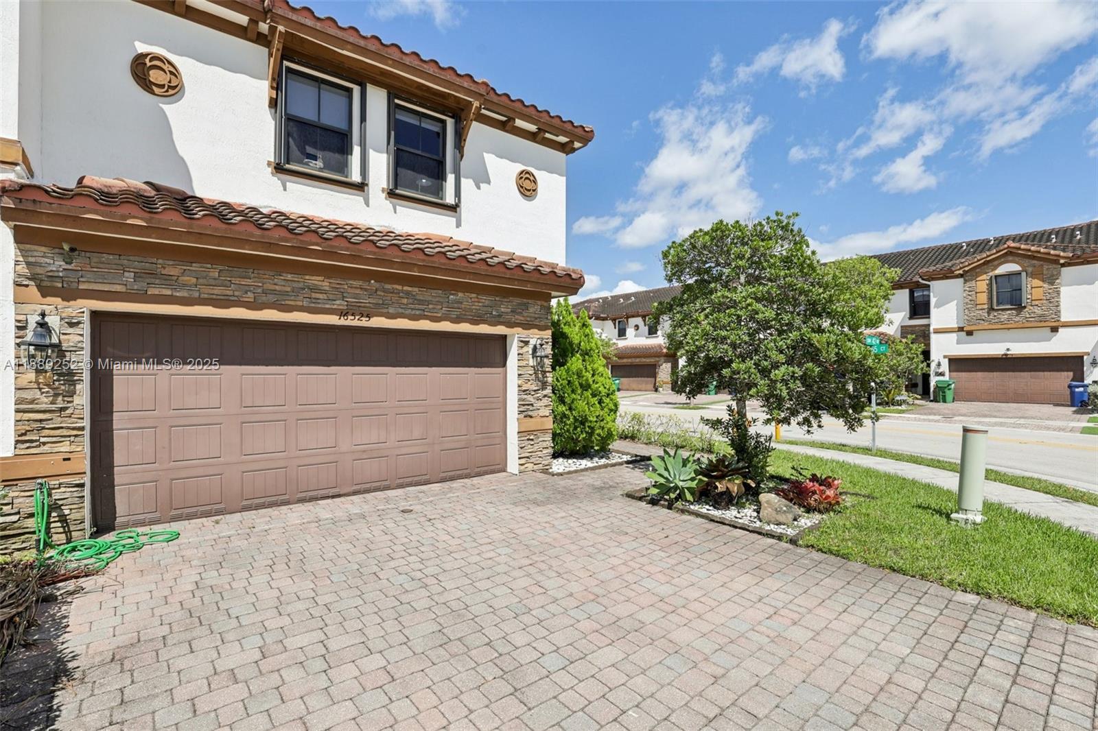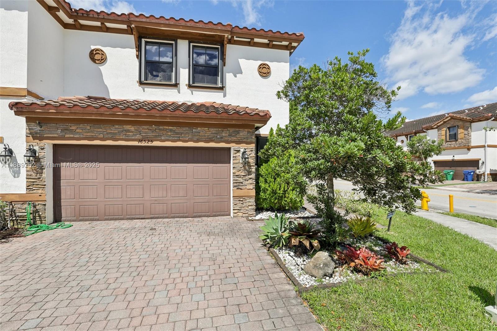 Corner-lot lakefront gem in Towns at Grand Lakes Estates! This 3-bedroom, 2.5-bath home offers serene water views and added privacy from its prime location. Features include a two-car garage, bright open layout, updated flooring, backyard pavers, glass stair railing, kitchen backsplash, pantry closet, and modern lighting. Hurricane shutters included. Enjoy resort-style living with community pool and clubhouse. Located near top-rated schools, shopping, dining, and major highways—this home blends comfort, style, and convenience.
