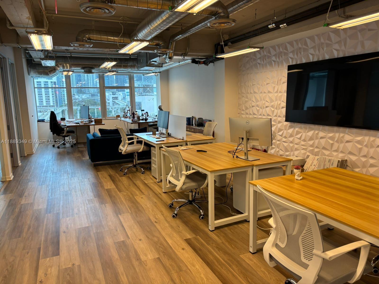 Upgraded and Fully Furnished corner unit office boosting 2,227 sqft under AC . Ample and bright space with lots of windows and natural light. Porcelain floors, enhanced light fixtures, additional office / telecom booths, kitchen space and more. Fully serviced building with reception desk, valet parking, meeting rooms and management office on site. EASY TO SHOW.