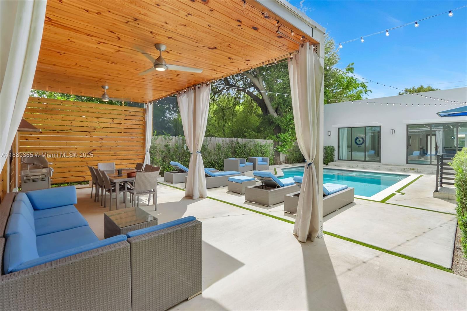 Built in 2022, this nearly 2,300 sq ft, 5 bed/3.5 bath Buena Vista home blends modern style, convenience, just one block from Miami's Design District. The main house offers 3 bedrooms, 2.5 baths, soaring 10-ft ceilings, and an open flow-through layout that extends seamlessly to an entertainer’s backyard with a resort-style pool, hot tub and covered terrace. The private, fenced 7,200 sq ft low maintenance lot features turf, concrete patio spaces, and two mature mango trees. The spacious primary suite includes a walk-in closet and spa-like bath. A separate 2-bedroom, 1-bath guest house with kitchenette is ideal for visitors, multi-gen living, or gym/office space. On a quiet street lined with new construction homes, this house is minutes from Wynwood, Brickell, Miami Beach, and the airport.