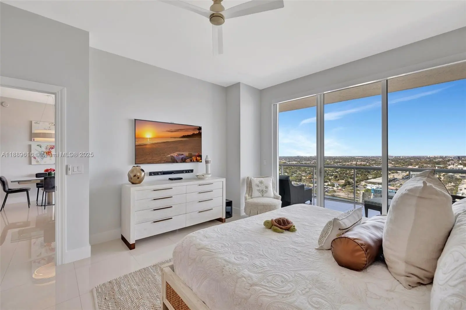 Experience refined coastal living in this elegant lower-penthouse residence, featuring soaring 10' ceilings and stunning, unobstructed Intracoastal views. Located on the 17th floor of The Plaza at Oceanside, this beautifully finished residence offers a newly remodeled kitchen with high-end modern upgrades. Embrace a true resort-style lifestyle with a state-of-the-art fitness center, professional tennis courts, billiards, a luxury pool, golf simulator, and complimentary continental breakfast at the News Café. Unwind with spectacular sunsets from your expansive ±375-square-foot outdoor living space. Just a short stroll to the beach, fine dining, shopping, and vibrant nightlife; this is coastal luxury reimagined, where every detail has been thoughtfully curated for the discerning buyer.