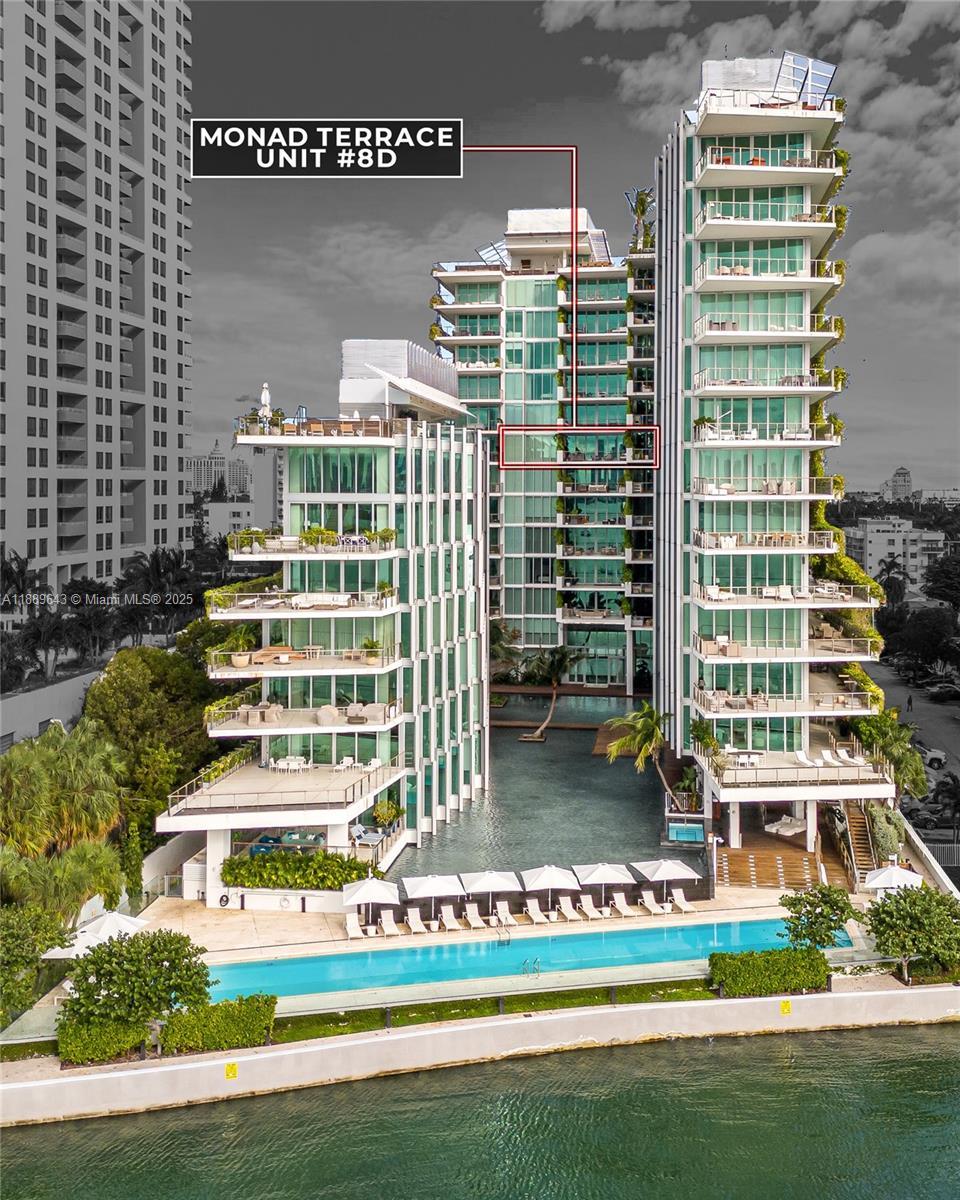 Experience the elegance of Monad Terrace, Unit 8D, a stunning waterfront residence designed by Pritzker Prize-winning architect Jean Nouvel, part of an exclusive collection of 59 homes along Biscayne Bay. Upon entering,you'll find natural light flooding the spacious interiors, featuring opulent marble bathrooms, custom cabinetry,exquisite designer fixtures, and warm teak wood flooring. Each residence offers a private elevator for added convenience. Enjoy luxury living where nature and design meet in the heart of Miami Beach. Picture sipping yourmorning coffee on the expansive wraparound balcony at sunrise and unwinding with stunning sunsets from yourprivate terrace. This is not just a home; it’s a lifestyle of sophistication and beauty. Furniture negotiable. Priced to Sell.