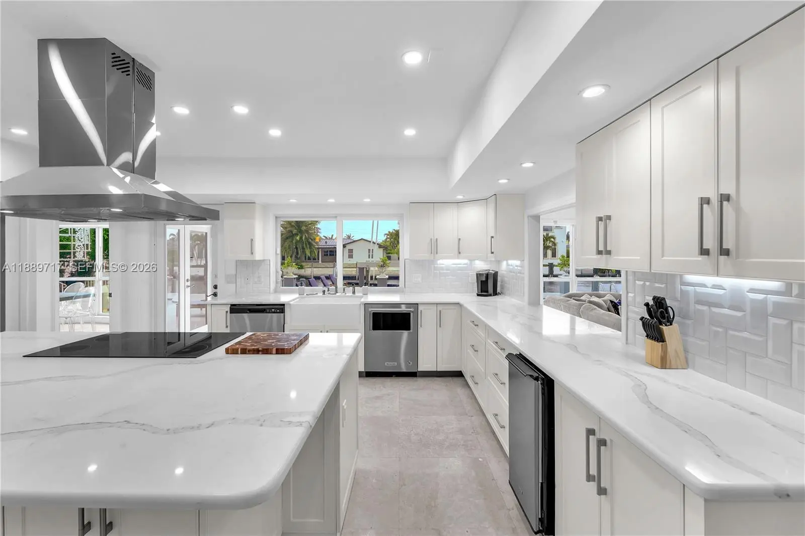 Impressive waterfront estate offering scale, privacy, and versatility in the heart of Lighthouse Point. Set on approximately 100 feet along the North Grand Canal with direct ocean access and no fixed bridges, the home suits full-time living, seasonal use, or luxury rental income potential. Approximately 97 feet of dockage with boat lift allows waterfront enjoyment while preserving expansive poolside and terrace entertaining space. With 6,594 square feet, the residence offers 7 bedrooms and 6.5 baths, including a private guest suite above the garage ideal for extended family, visitors, or flexible rental use. The home is fully set up and operating for short-term rental use, allowing part-time occupancy while generating income when not in residence. Interior spaces are generous and adaptable for everyday living or large gatherings, complemented by a renovated primary bath and full impact glass throughout. The eastern-exposure backyard captures beautiful morning light and tranquil canal views. A rare opportunity to own a substantial waterfront home with meaningful upgrades in one of Lighthouse Point’s most sought-after neighborhoods, offering exceptional lifestyle appeal and ownership flexibility.