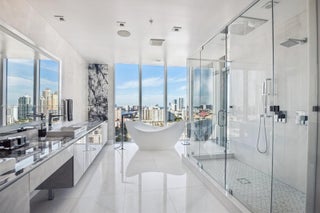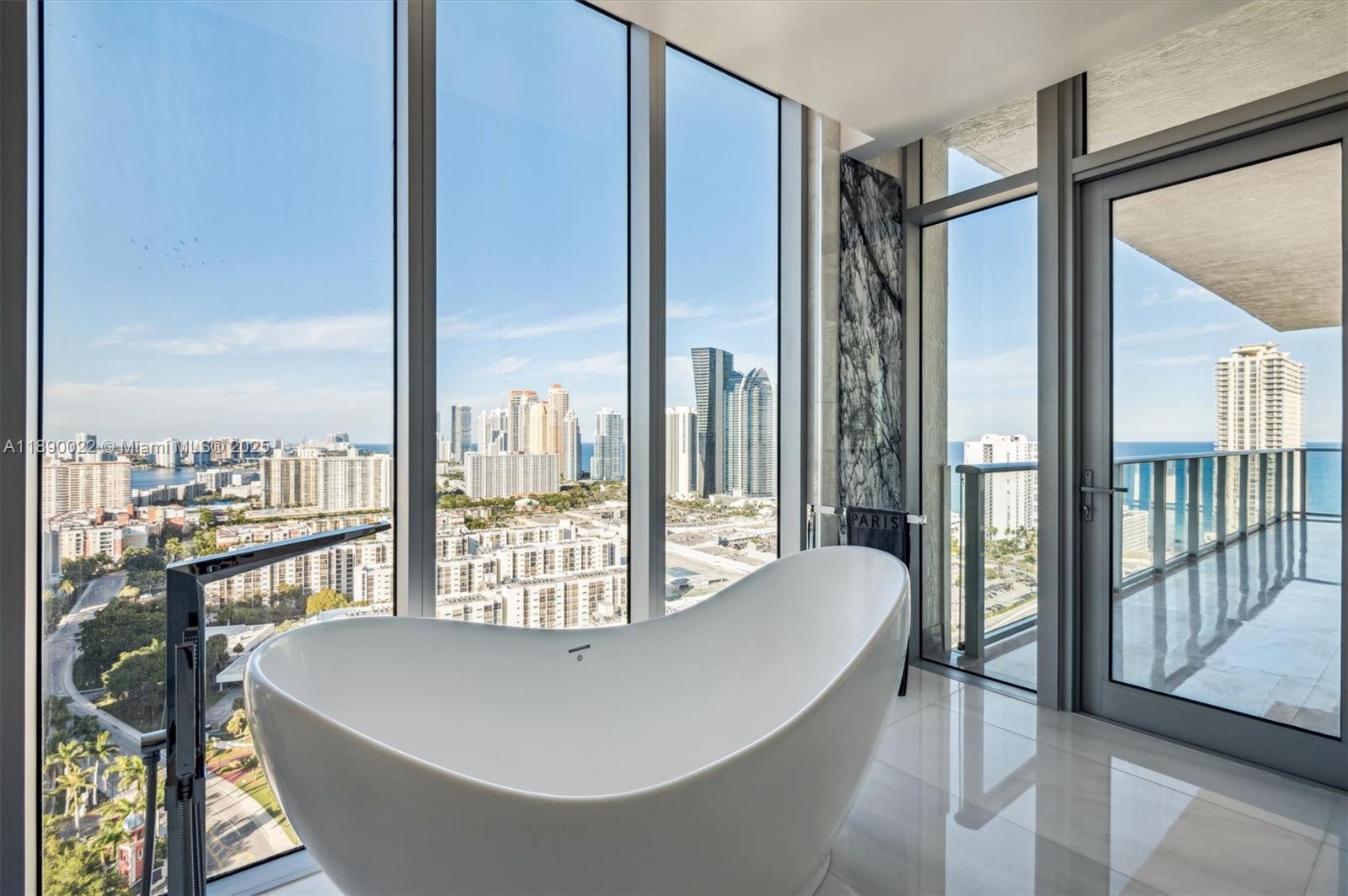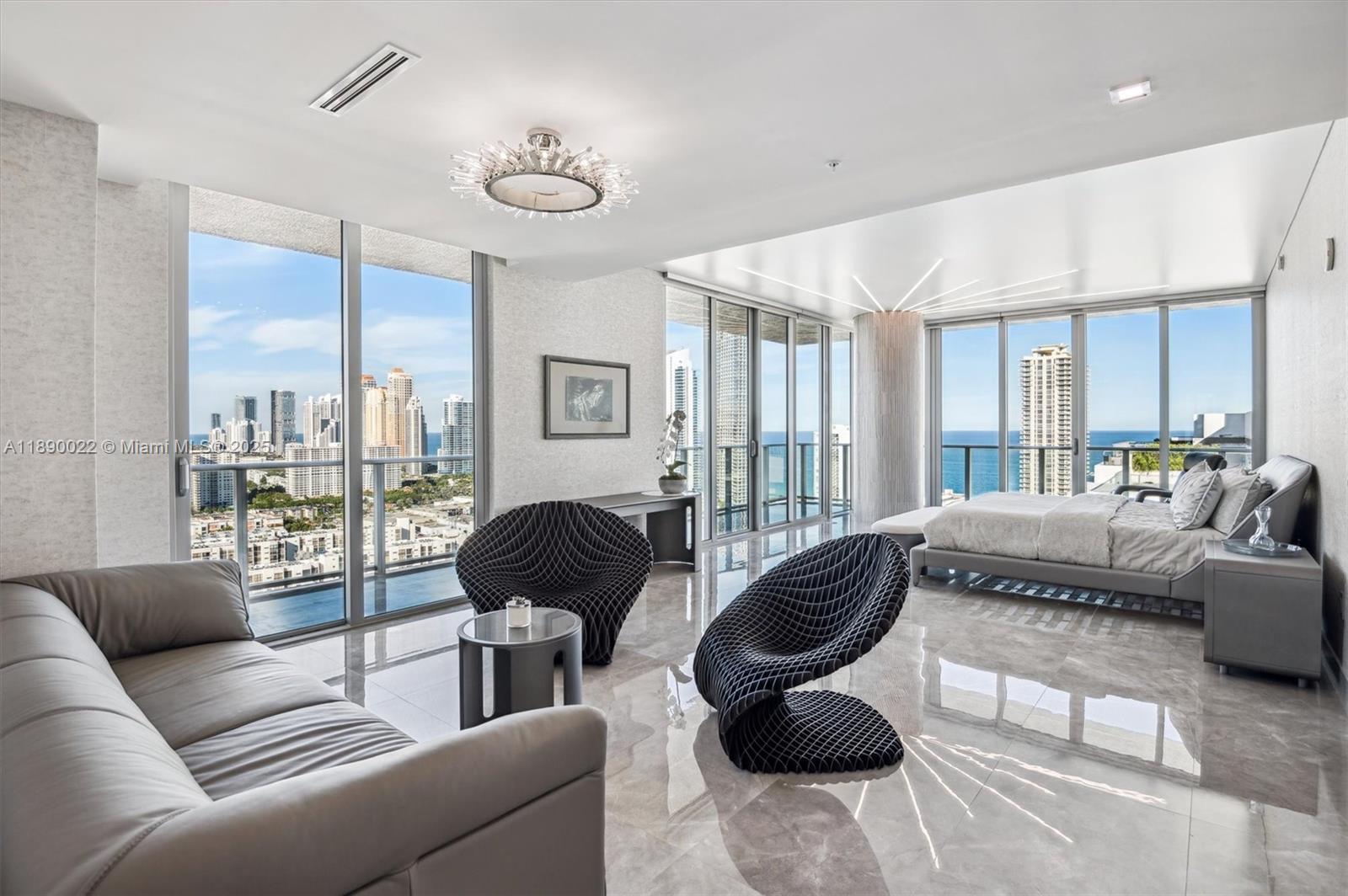 This stunning, state of the art Upper Penthouse is the epitome of turnkey luxury, w/4BR+Den & 5BA, spanning nearly 5,000sf of living space (3,877sf interior+1,011sf wrap around balcony) just steps from the beach. Professionally designed by Intero Futuro and fully furnished to provide an unparalleled living experience. Open layout with stretch ceilings and ultra-modern, linear LED lighting. Floor to ceiling windows with breathtaking views of the ocean, intracoastal and city skyline. Customized closets and a curated collection of luxury Italian furniture. Top-tier chef’s kitchen, Wolf/Sub-Zero/Bosch appliances with marble+adamantium quartzite countertops. Spacious primary suite with stunning ocean views, designer walk-in closet and a spa-like bathroom that creates a serene and lavish escape.