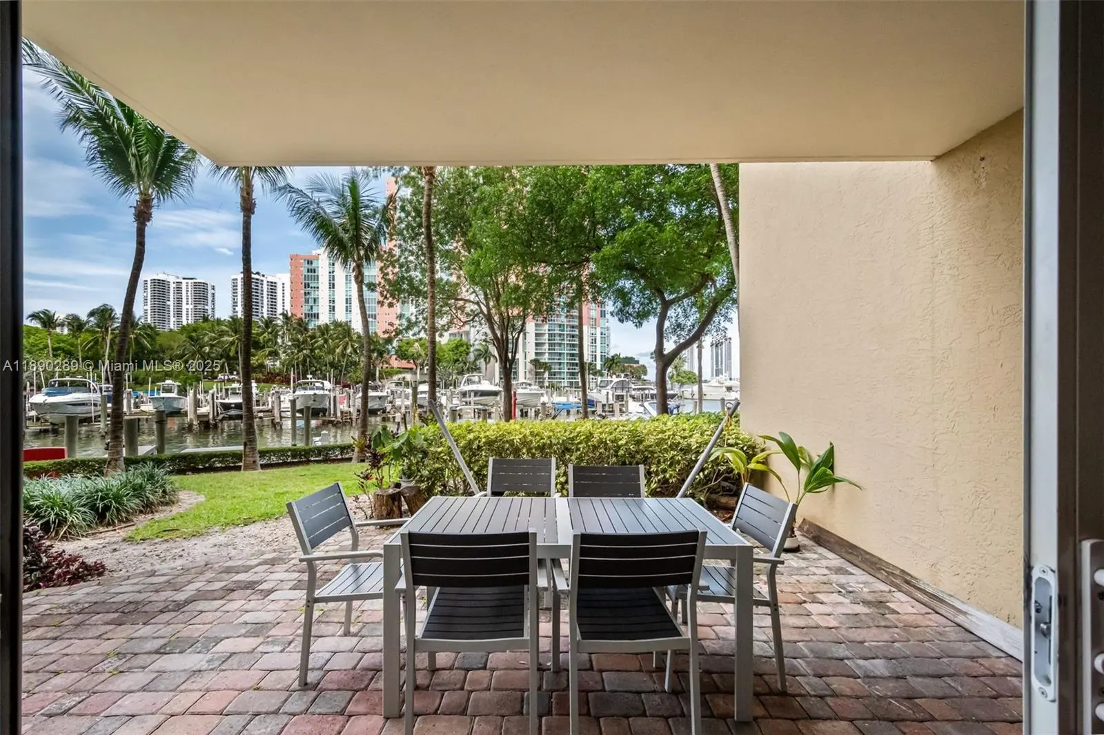 THE FEEL OF A HOUSE, THE CONVENIENCE OF A CONDO, THE BEST VALUE IN AVENTURA!!! UNIQUE GROUND FLOOR CONDO OVERLOOKING THE MARINA AND THE INTRACOASTAL WITH LARGE PAVED COVERED PATIO. SPLIT FLOOR PLAN WITH TWO MASTER SUITES. PORCELAIN FLOORS IN LIVING AREA, KITCHEN AND BATHS, NICE VYNIL FLOORING IN BEDROOMS. SPACIOUS MAIN BEDROOM WITH WALK-IN CLOSET, MASTER BATH HAS DUAL SINKS, ROMAN TUB AND SHOWER. EAT IN KITCHEN WITH SS APPLIANCES AND GRANITE COUNTERTOPS. PLENTY OF AMENITIES... 2 POOLS, JACUZZI, GYM, SPA ON SITE, SAUNA, STEAM ROOM, CARDS ROOM, BILLIARDS, PARTY ROOM. 2 COVERED PARKING SPACES. VERY CLOSE TO AVENTURA MALL AND SHOPPING, NEXT TO FOUNDERS PARK AND MINUTES AWAY FROM THE BEACH.