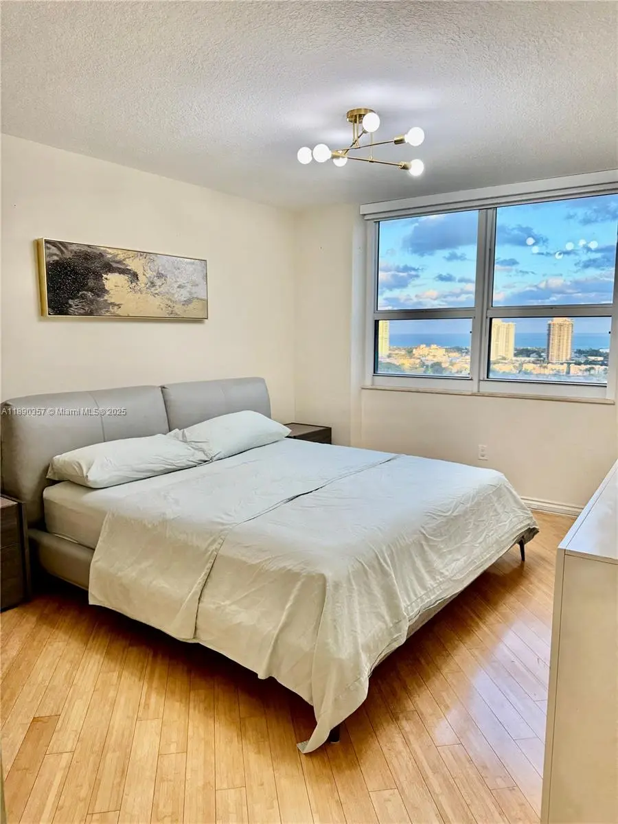 Furnished and comfortable apartament with exceptopnal view to the golf course and intracostal from the balcony and every room. Spacious 2 Beds with 2 Baths, bamboo floor, kitchen with granite counter-top, full size washer and dryer inside the unit. All the appliances and the air conditioning are new. Building features: 24/7 concierge, security, valet parking, fitness center with yoga studio, business center, conference room, game room, kids pool, BBQ, cortesy bus & more. Walking distance to Aventura Mall, easy access to the major Hwys, restaurants and city parks.