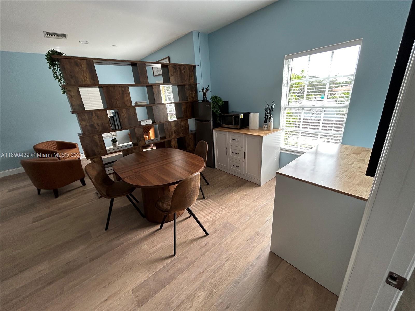 Centrally located in the Downtown Art District of Vero Beach! Newly remodeled co-working suite offering a private office space, approx. 134 sq ft. The suite features a newly furnished lobby, peaceful atmosphere, and a professional environment shared by respectful and friendly business owners. Two assigned parking spaces. Utilities included, except internet, tenant to contract own service. Prime corner location near Vero Beach High School and Saint Francis Manor, offering excellent visibility and accessibility.