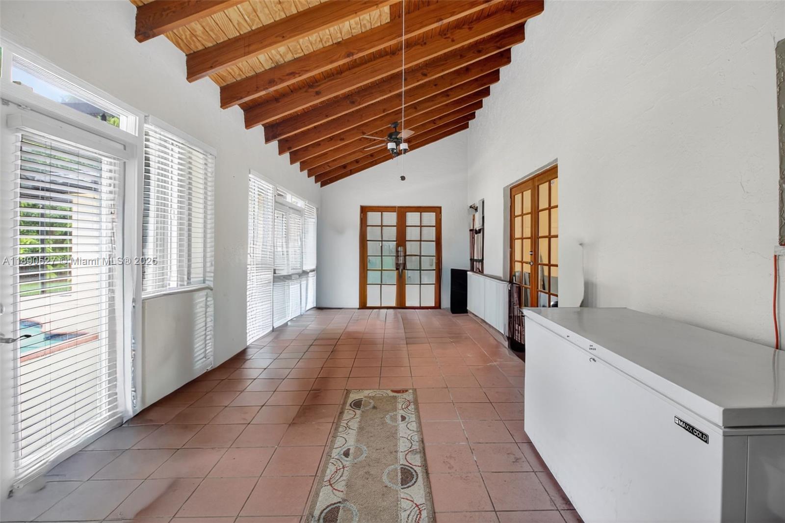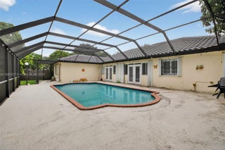 Stunning 5-Bedroom Home on a Peaceful Private Cul-de-Sac. This spacious home blends elegance, comfort, and functionality — perfect for family living and entertaining. Step inside to an open, light-filled layout featuring a separate living room, formal dining area, and an expansive Florida room that opens to the backyard oasis. The remodeled kitchen showcases sleek modern finishes. Throughout the home, plantation shutters and accordion hurricane shutters. Enjoy the best of Florida living outdoors with a screened-in pool, an oversized covered terrace with soaring ceilings, and a large patio surrounded by lush landscaping. The backyard also features a variety of fruit trees .Converted garage of, a circular driveway with generous parking, a new roof, and a large storage shed. With no HOA.