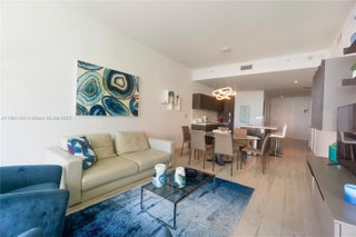 Gorgeous 2 bed 2 bath plus den high floor flat in the luxury Gran Paraiso condo! Amazing and magnetic water view from living room, master bedroom and beautiful oversize terrace overlooking Biscayne Bay. The apartment comes furnished (Italian high end brands) and features wood porcelain floor all over, Wolf built in appliances, kitchen isle with sink and dishwasher, electrical blinds and sheers, walk-in and built-in closets. Incredible amenities, including gyms (cardio, weights and yoga room), 2 tennis court, SPA, business center, cigar room, wonderful round infinity pool, club room within many others. Great appreciation is coming from the continuous development of Edgewater and the opening of all the retail spaces at the ground floor of the 4 condo. Price is firm.