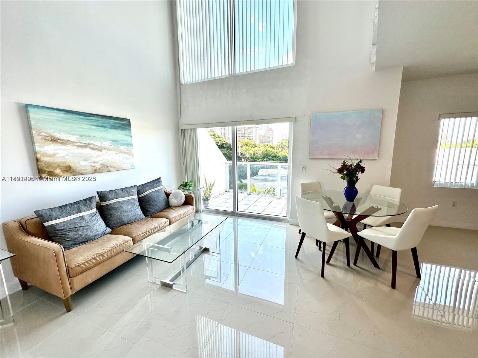 Great opportunity to rent a fully furnished 2-story 1 bedroom 1 1/2 bath condo in boutique building Lofts on Brickell II. This bright and spacious loft-style unit features volume ceilings, beautiful porcelain tile floors throughout, impact windows and sliding doors, a modern Italian kitchen with granite countertops and stainless steel appliances, in-unit washer/dryer, and 2 balconies. The bedroom on the 2nd floor is open to the living area downstairs. The condo comes with 1 covered parking space. Great location 3 blocks from the heart of Brickell, including Mary Brickell Village, Brickell City Centre, parks, and more. No pets. Offered fully furnished only.