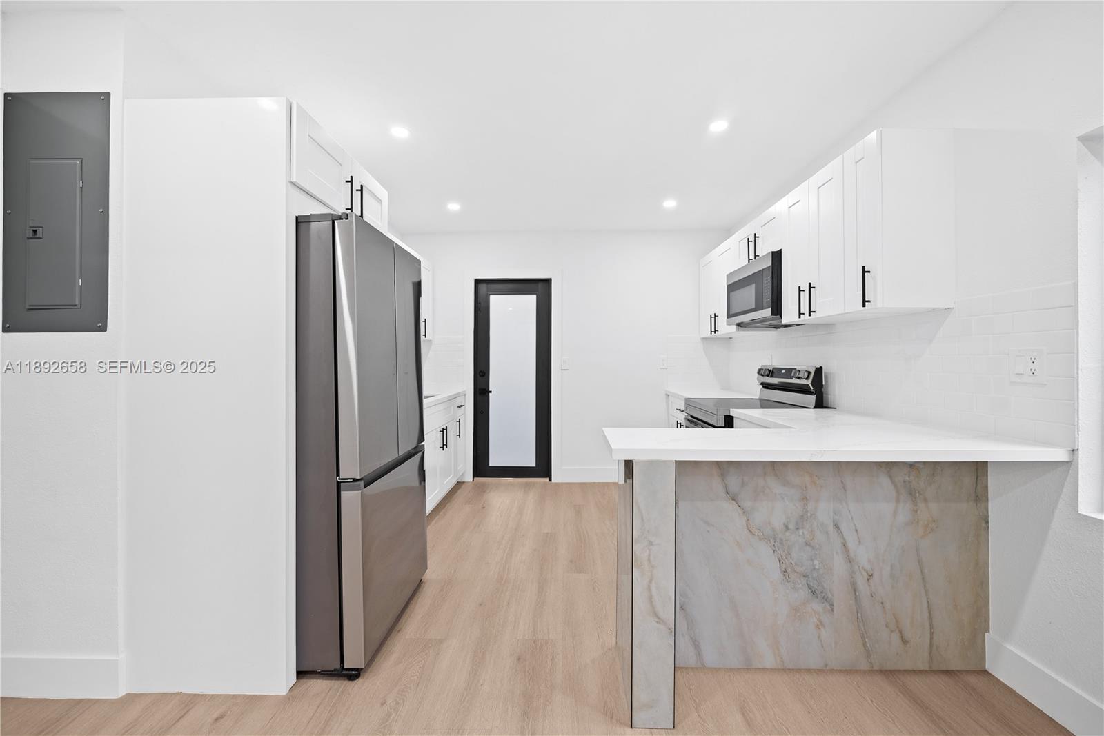 Look no further—your turnkey dream home is here! This stunning 3-bed home has been completely transformed from top to bottom. Enjoy an all-NEW interior with NEW flooring, fresh paint, NEW washer and Dryer, and a REDONE kitchen featuring sleek cabinetry, NEW quartz countertops, and NEW stainless steel appliances. The bathroom is fully RENOVATED with elegant finishes, and NEW PVC plumbing offers lasting peace of mind. NEW AC, NEW ROOF, and IMPACT windows ensure comfort and efficiency. Potential to easily add a 2nd bathroom! The property is fully fenced all around for privacy and security, and features a mature mango tree providing shade and tropical charm. Every detail is redone—move right in. Near Zoo Miami, Larry & Penny Thompson Park, and major highways.
