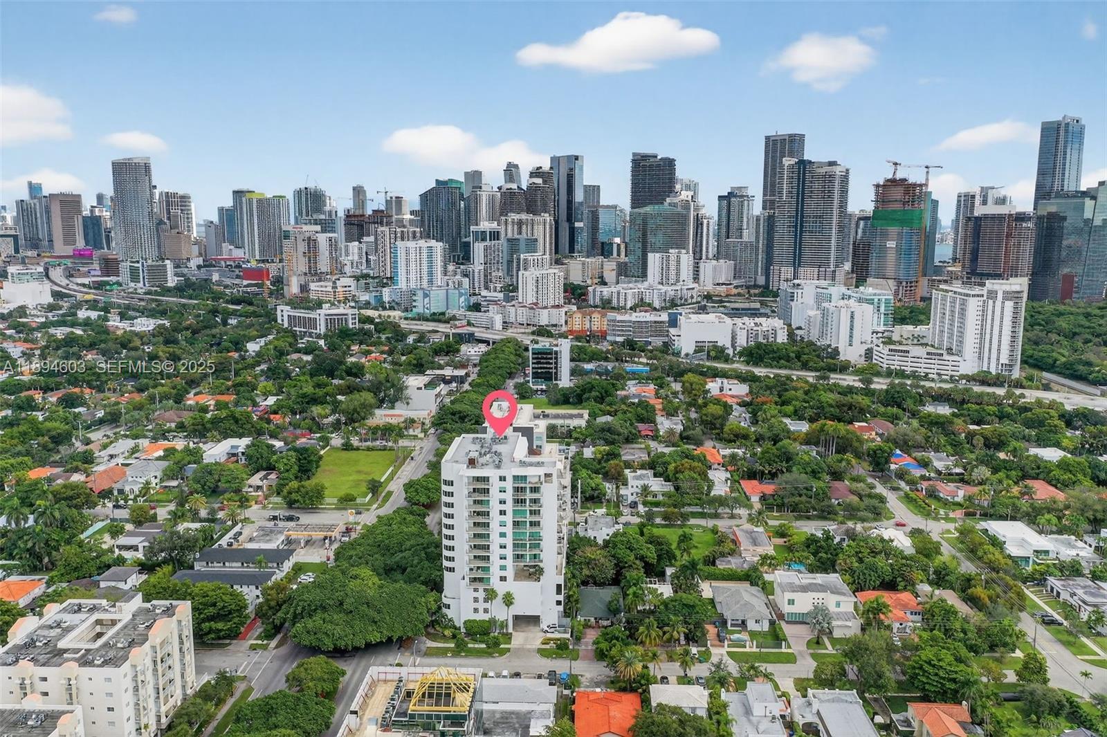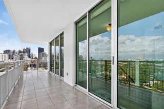 Stunning and spacious penthouse at The Roads at 21st Condo - just steps from Brickell. 2-Assigned Parking Spaces and Pet Friendly. Enjoy breathtaking panoramic views of the Brickell skyline and exquisite sunsets from two wraparound balconies. The upper floor features a spacious primary suite with a huge walk-in closet, large bath, and versatile den ideal for an office or sitting area, plus extra storage. Bright open-concept kitchen overlooks the living/dining area with abundant natural light throughout. Additional features: impact windows/doors, full-size washer & dryer and motorized blinds. Boutique building with pool & gym. Conveniently located near I-95—minutes to Brickell and Downtown without the hustle and bustle.