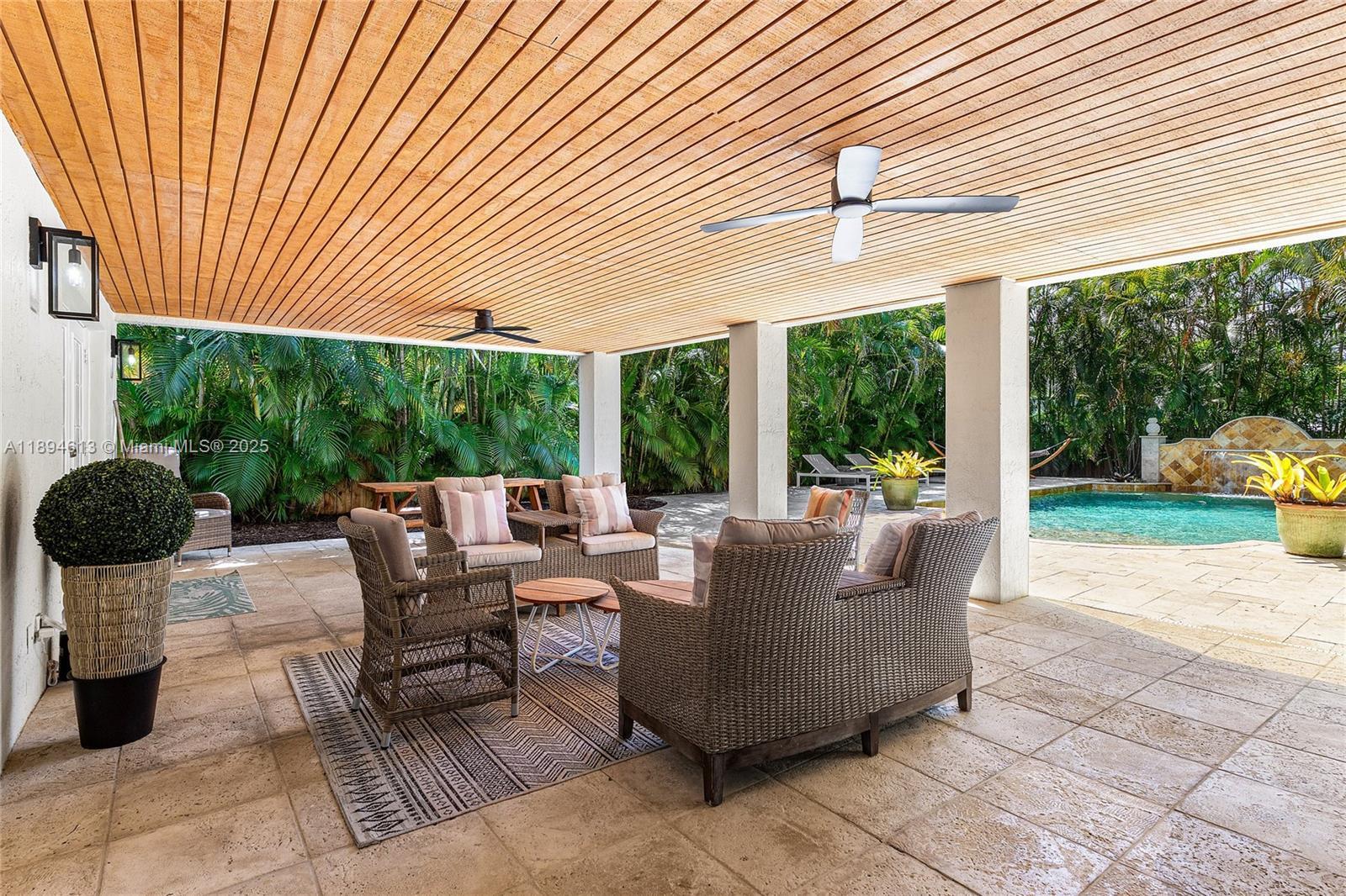 Owner is the designer/owner/builder. Hot tub on second floor deck, stand up attic with pull down stairs, tumbled marble pool deck. Pool, cameras, a/c system are all WiFi enabled. Pool is heated/chilled, pebble tec, dedicated vacuum input, waterfall. 550 sq ft patio ready for motorized screens, backyard southern exposure surrounded by 20' Areca palm trees. House will never flood - had another foot to go during the recent 1,000 year rain. Includes all furniture, bedding, dishes, TVs, etc - turnkey. Central location with no backyard traffic noise. 10 minutes drive to Las Olas or the beach, 5 minutes to I-95, bike lane at driveway with 3 minute ride to Wilton Drive. Parking for 8 cars. Built 20 years ago to 140 mph wind code. PVC and copper plumbing. All water is filtered.