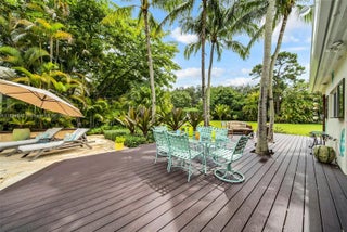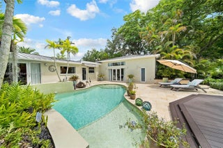 Discover your own private retreat in this tropical, resort-style property set on a builder's acre with lush, mature landscaping. The sunlit main house offers open-concept living, 4 bedrooms, and 3.5 baths, including a stylish primary suite tucked away in its own wing for ultimate privacy. Across the lagoon-style pool and expansive deck, a separate pool house provides flexible space for guests, an in-law suite, or a home office. Outdoor living shines with a covered terrace, outdoor shower, and generous backyard - perfect for soccer, gatherings, or enjoying fresh tropical fruit from your own trees. Additional features include massive storage, an EV charger, ample gated parking, and top-rated schools nearby. Tenant occupied until Nov 30, 2025.