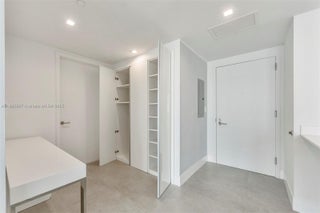 Enlarged bedroom, amazing redesign. Added closets, Built ins, Luxury glass doors, Spectacular views! Exclusive features for your high end client. DUA Brickell offers concierge services only available in this luxury property. Glass backsplash enhances the kitchen with snack bar. Small den area for workspace with closet. So much room. So much luxury. The Views from every room to blue waters. Large, tiled balcony off living room & bedroom. Recessed lighting, specialty features