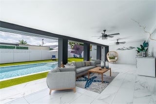 Stunning property 4 bedrooms, 2.5 bathrooms, and a den. House has been completely updated with the most finest details. White kitchen cabinets, a cascade peninsula w/white stone, top of the line appliances, a walk-in pantry. Tile throughout, impact glass including the front and back door. All windows w/zebra roller shades. Spectacular and inviting pool area, cover terrace, and summer kitchen. New white PVC fence. New lighting inside & outside. New Electric panel, and pvc plumbing. Underground power line. Stamped concrete driveway, that can fit uo to 4 cars. Amazing property, moved in condition to enjoy life!