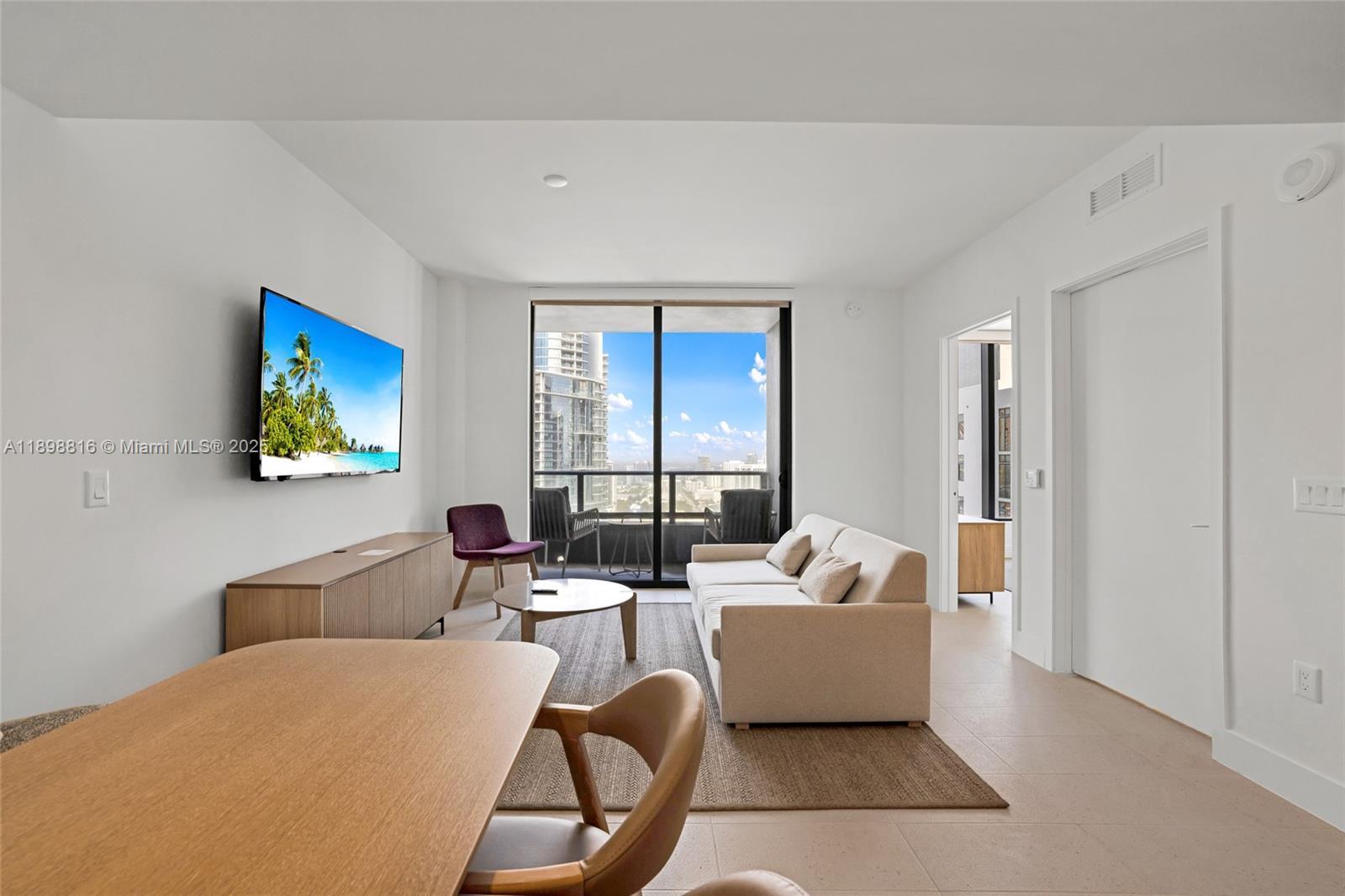 Perched on the 40th floor, this one-bedroom condo offers panoramic views of Biscayne Bay, the Miami skyline, and the vibrant Miami Worldcenter. Wake up to sunrise vistas from the king suite and unwind in the bright living area with a sofa bed and a private balcony. The residence features a modern kitchen, in-unit washer and dryer, and two Smart TVs for ultimate comfort. At Gale Miami, enjoy over 55,000 sq. ft. of resort-style amenities—including a rooftop pool and bar, full-service spa with hammam and sauna, and a state-of-the-art fitness center. With flexible daily rentals and a premier location steps from the Kaseya Center, Brickell, and the Brightline station, this home perfectly blends luxury living with investment potential.