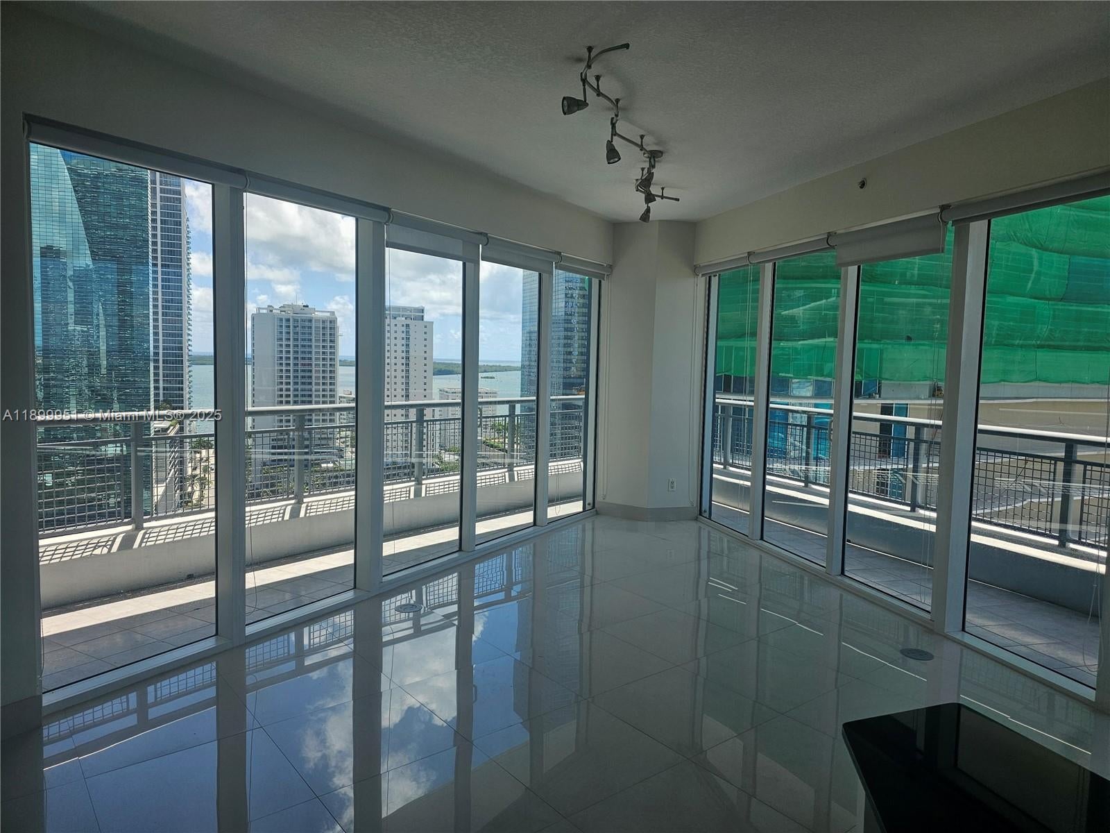 UNIQUE 2BD 2.2 BATH WITH 270 DEGREE VIEW OF BRICKELL. Porcelain flooring, floor to ceiling glass panoramic views from the wrap around balcony w private entrance from each bedroom. Washer & Dryer in unit. Duo roller shades black out/sheer, SS appliances, granite counter tops, mosaic design, island kitchen foyer entrance, extra storage room, closet organizers, state of the art wellness center, 24 HR Valet & Concierge, Convenient store, Contemporary lobby, pool, spa, conference room, walking distance to Publix, Train station, Mary Brickell Village, Brickell City Center, Business Financial District, fine dining, trendy places and hot spots. Basic Cable & Internet included by association.