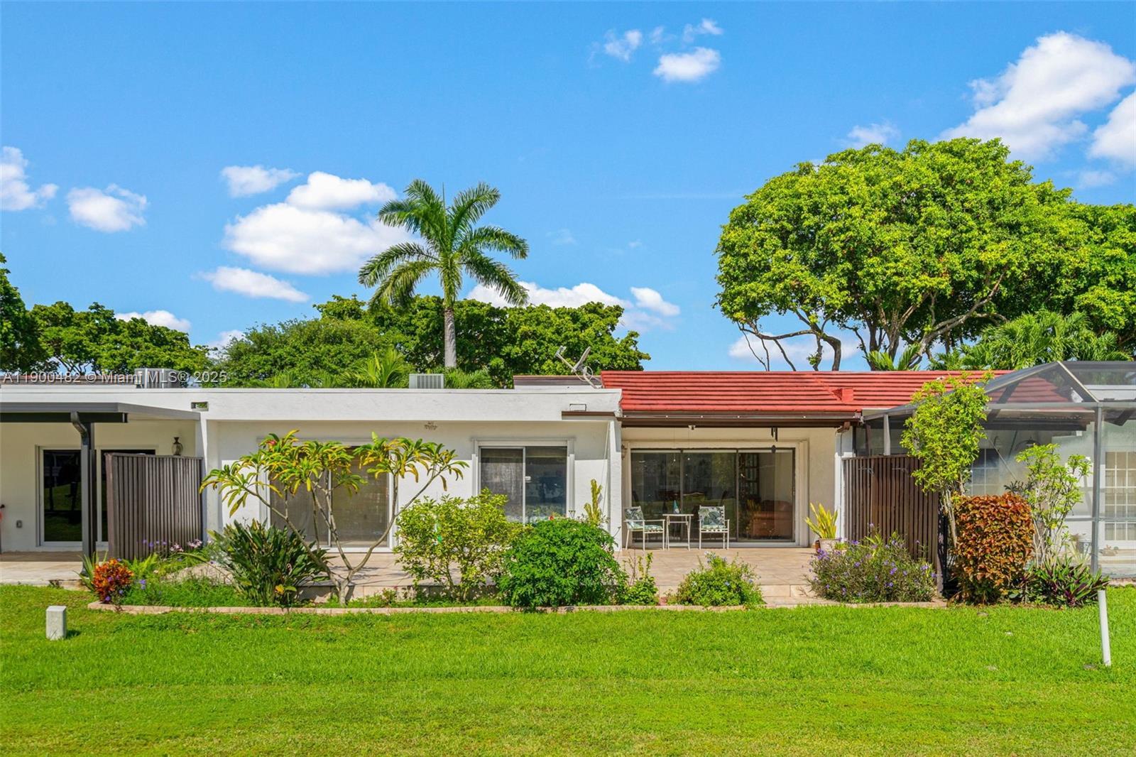 Charming home offering 2,069 sq.ft. of living space with a desirable 2-car garage & stunning views of the golf course.Step inside to find an inviting open courtyard entry, for a welcoming first impression.The heart of the home features a remodeled kitchen with modern finishes and a beautifully updated second bathroom, while the primary suite bath remains in its original but well-maintained condition, providing an opportunity for personal customization. Upgraded impact-rated doors in select areas and shutters throughout for added peace of mind. The tiled backyard ensures low-maintenance living, allowing you to spend more time relaxing and taking in the serene golf course views.Enjoy community amenities including basketball, tennis, & pickleball courts for an active lifestyle.