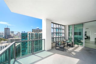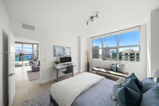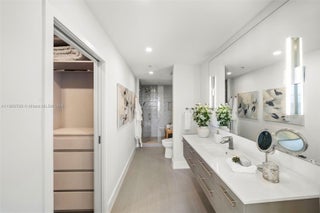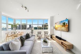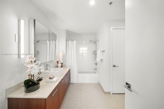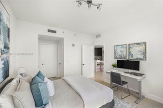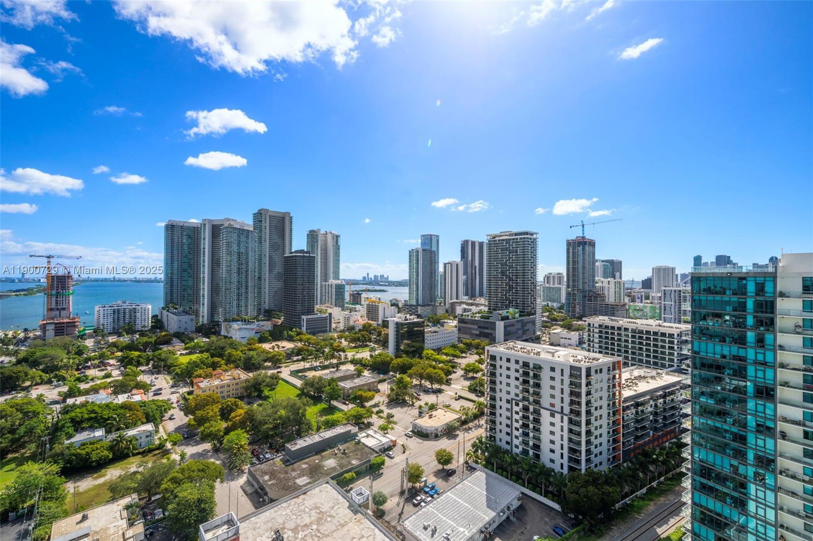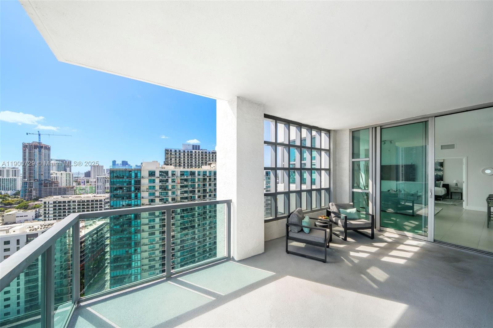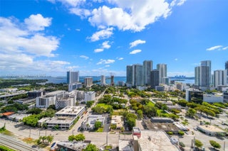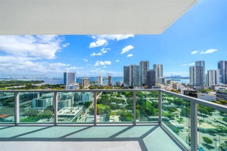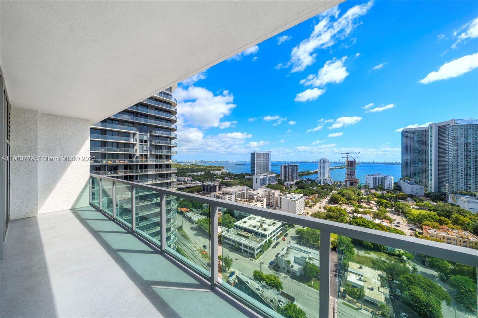 Impeccably renovated '12 line residence now available at Four Midtown. This expansive corner unit is the building's most coveted line, offering a spacious split floor plan, wrap-around balcony and views of the Miami Skyline and Biscayne Bay. New kitchen with waterfall countertop, stylish two-tone cabinets, farm sink and new appliances. Reconfigured primary suite offers an expanded custom closet that isn't standard on this floor plan. One of the most beloved elements of the '12 line is the balcony, which provides a wide covered section that acts as an indoor/outdoor retreat. Four Midtown was recently renovated with a new gym, pool and BBQ area. 24-hr security. Assigned parking. W/D in unit. Offered partially furnished with several designer pieces. Easy to show.