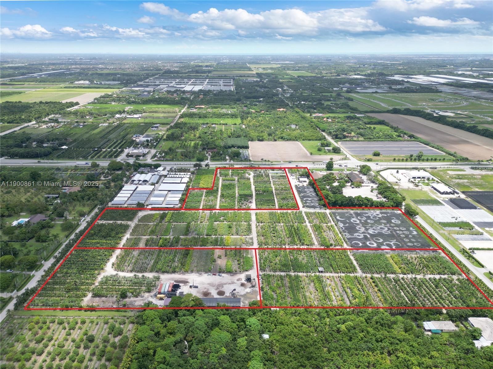 27+ ACRES ON KROME AVE..4 PARCELS 500+ FT FRONTAGE ON KROME, ANOTHER 500+ FT ON BUSY SW 192 STREET WHICH WRAPS AROUND THE BU1A SHOPPING CENTER.(RECENTLY FILED TO INCREASE THE ZONING FOR ENTIRE 5 ACRES TO BU1A CURRENTLY BU1A AND AGRI) AND THEN ACROSS TO SW 186 STREET THATS BOARDERING TOM THUMB ANOTHER BU1A TO NORTH. LOCATION.EXPOSURE & CHANGE.... THE LAND LAYOUT IS A BIG "T". IT IS A SUCCESSFUL TURNKEY WHOLESALE NURSERY BUSINESS W/ 4 M IN PLANT INVENTORY. PRODUCT AND OUTFIT PRISTINE.THE EQUIP IS ALSO INCLUDED.EMPLOYEES WOULD LOVE TO CONTINUE. SO MANY OPPORTUNITIES AVAILABLE DIVORCE FORCES THIS SALE. KROME CORRIDOR PASSED 2024. ANOTHER 15 ACRE TREE FARM CREW QRTS ETC OWNER BY SAME AVAIL IF DESIRED