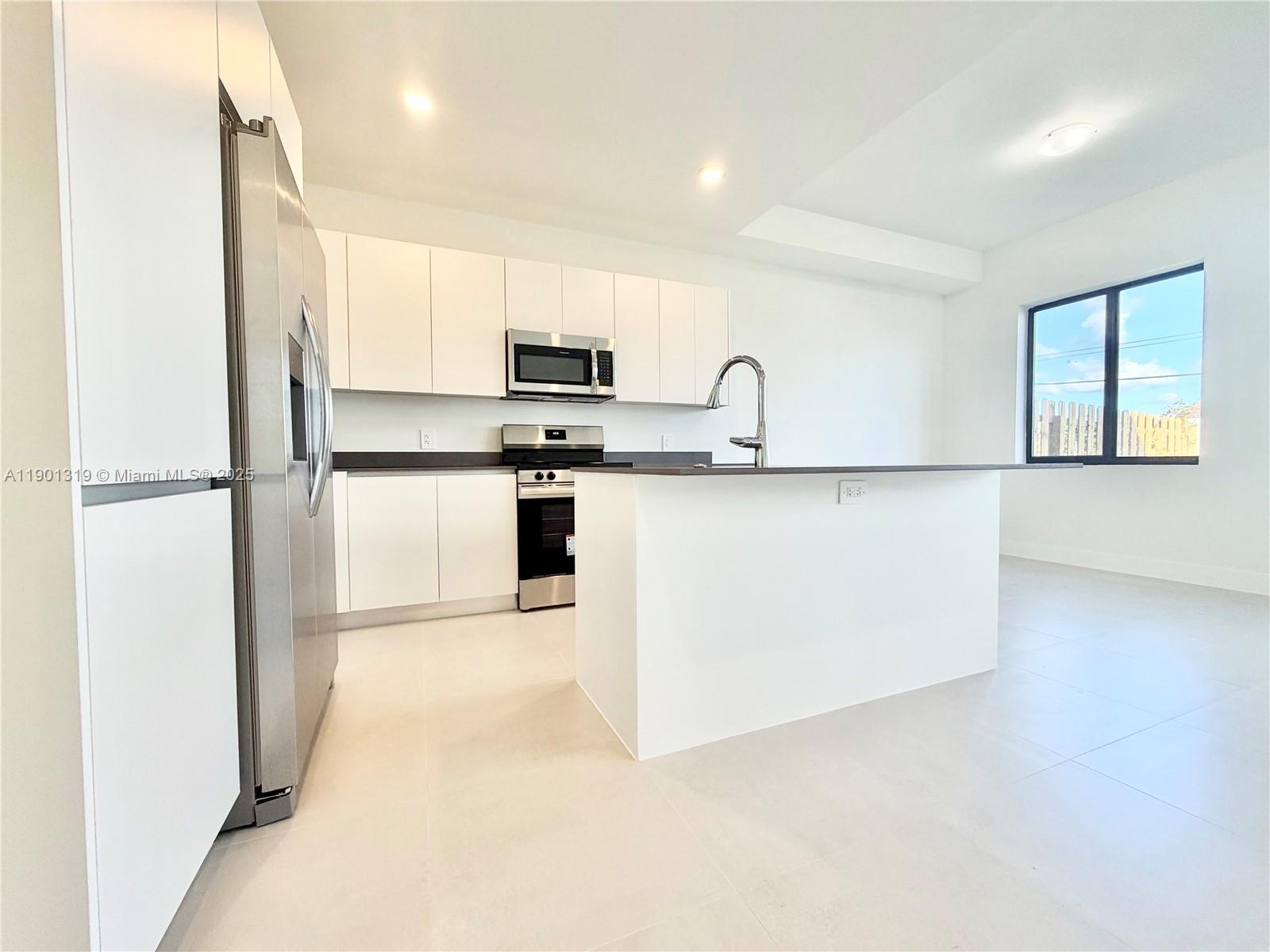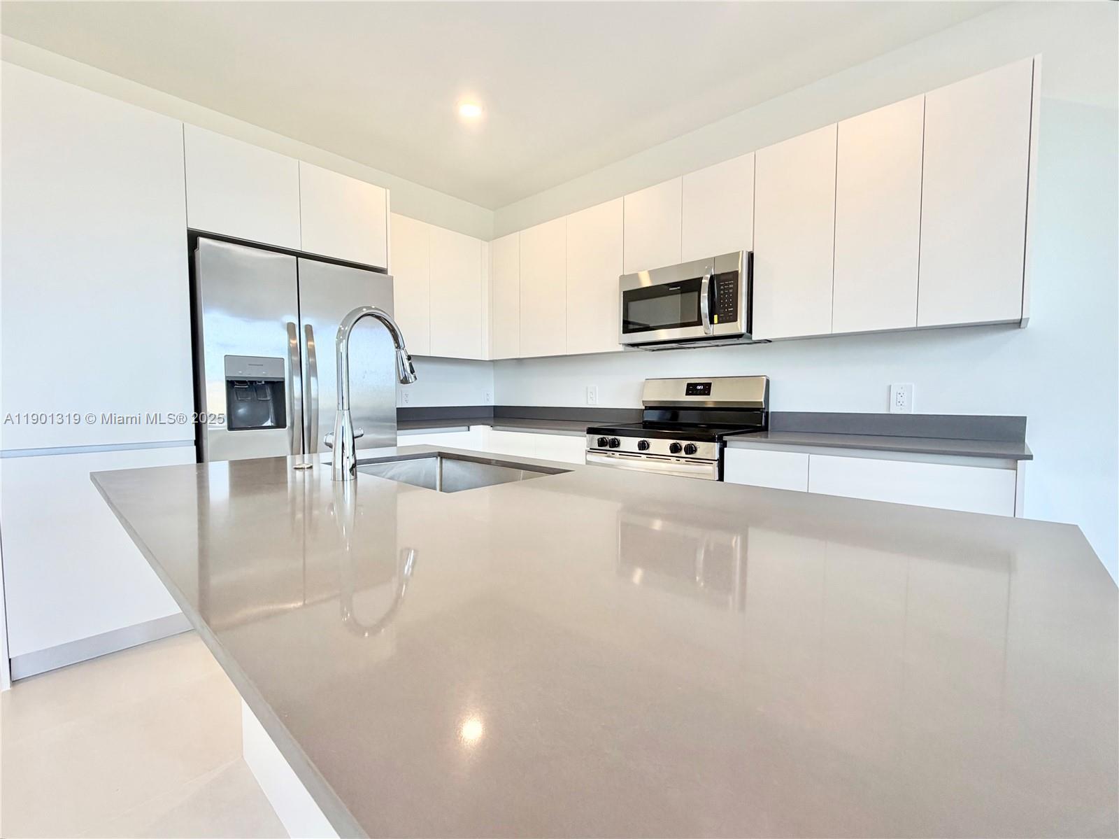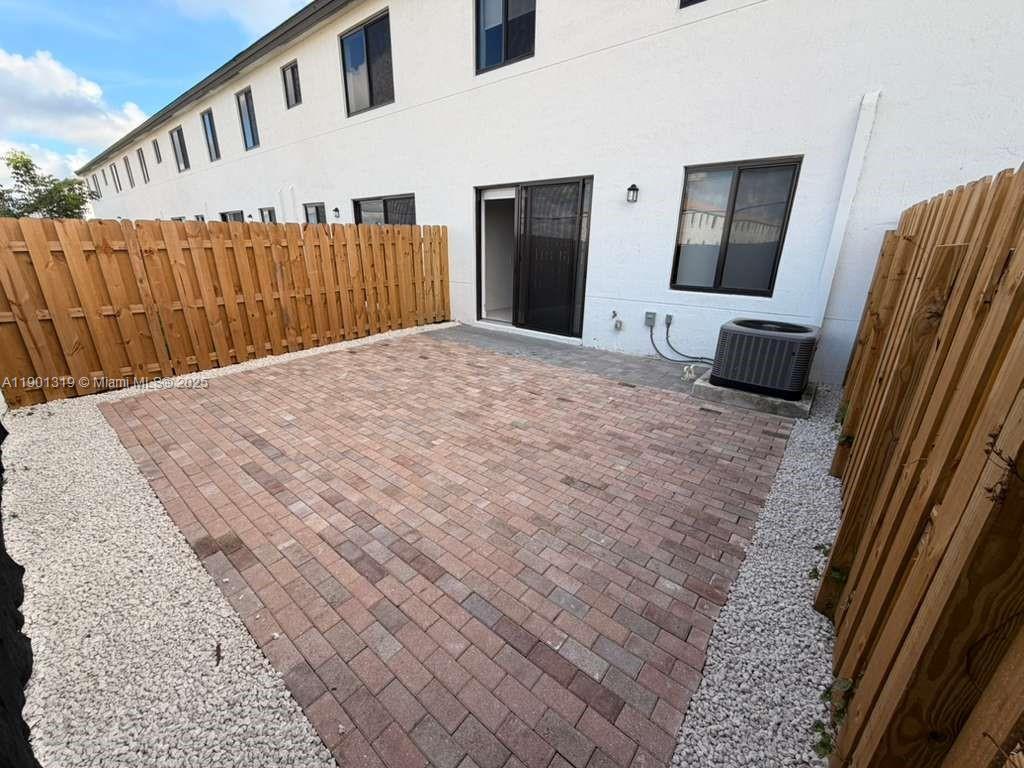 FOR RENT at CENTURY PARK SQUARE. Beautiful, modern and BRAND NEW 4-bedroom, 2.5-bathroom townhouse with a one-car garage located in a family-friendly community featuring playgrounds, sidewalks, and streetlights. This home offers elegant design and comfort with 24"x24" porcelain tile on the first floor, laminate wood upstairs, impact windows and doors, and a covered terrace with a private patio. The gourmet kitchen includes quartz countertops, modern cabinets, stainless steel appliances, and recessed lighting. Additional upgrades include glass shower doors in all bathrooms, a paved patio with private fence, a garage door motor, and blinds on all windows. Energy-efficient features and contemporary finishes throughout. Conveniently located close to major highways, shops, and great schools. Ready to move in.